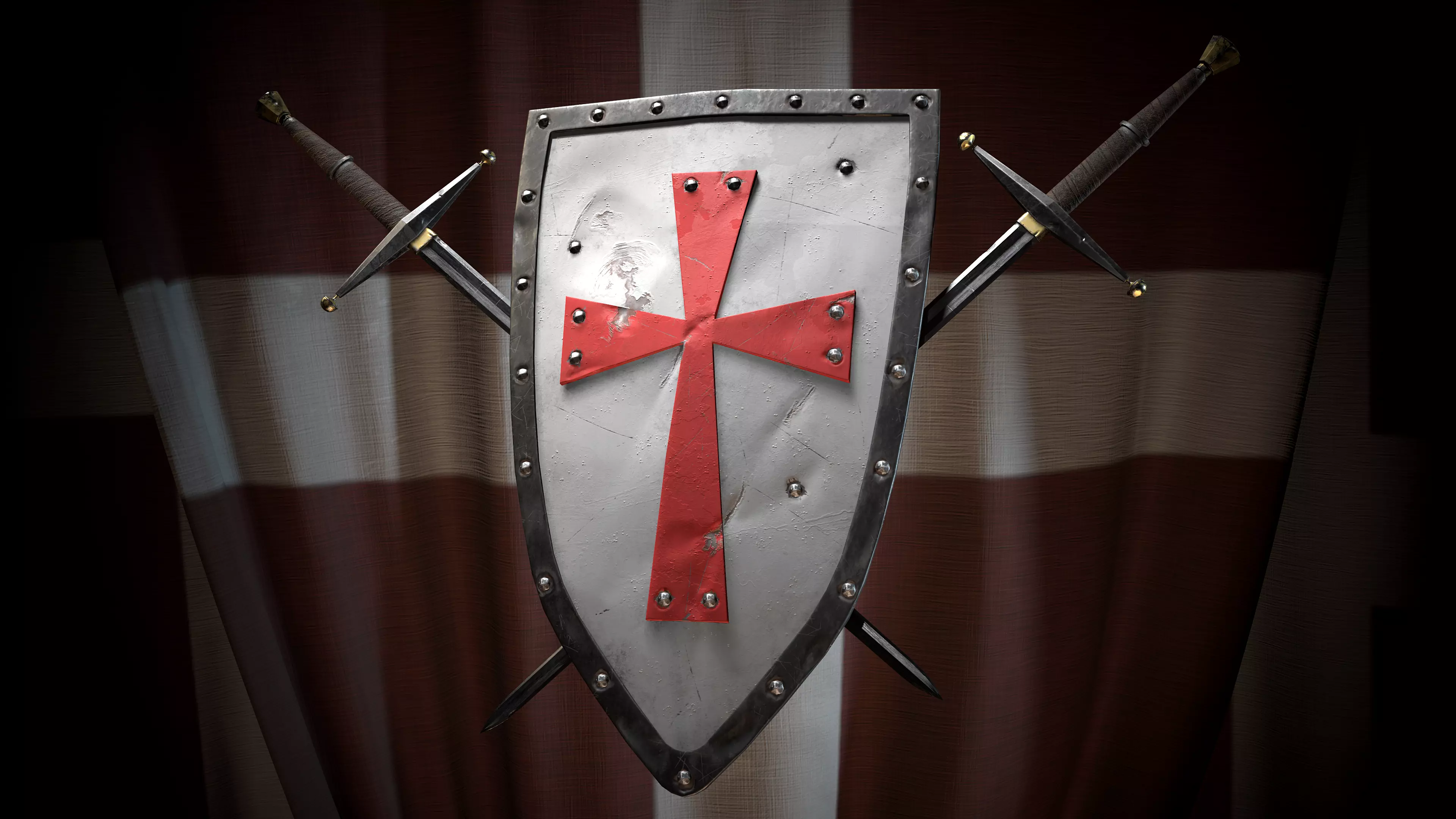 This is set of 2 Game ready models of Medieval battle templar sword and templar knight shield. Standard weapon set for every templars from beginning of the service, easy in use, effective in battle. These high-quality models have detailed and different textures of metal, gold and leather with various small surface details of damage, shabby and scratches after battles. As well as front plane of the shield has layered paint effectt.