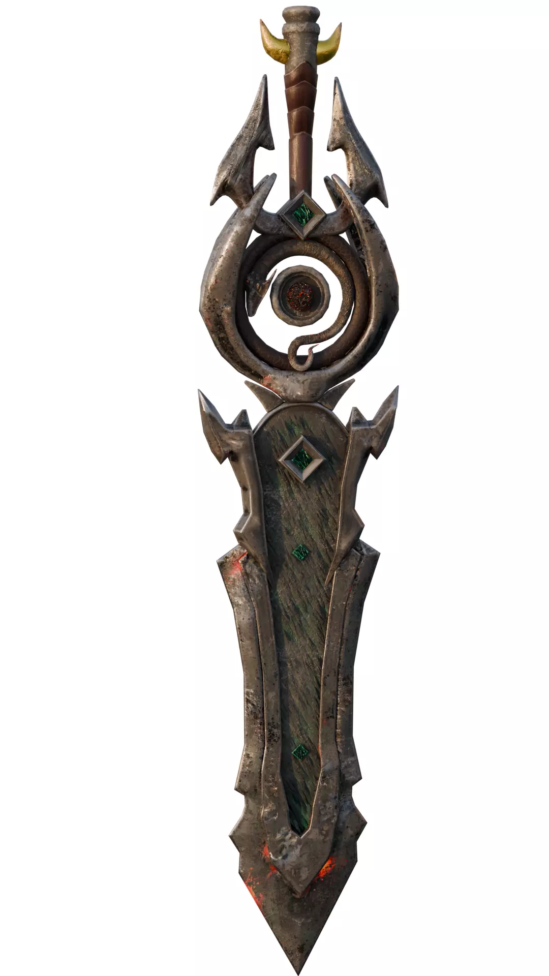 This game-ready fantasy sword is a high-quality 3D model designed for seamless integration into your project. Featuring a rugged, grungy finish and a dragon sculpture at the center. The model is fully optimized, with clean topology and efficient UV mapping, making it ideal for use in games, animations, or VR experiences. The textures include a weathered metal blade and rich detailing, delivering realism and character. Perfect for RPGs, dark fantasy settings, or action adventures, this sword will bring depth and visual appeal to your creations.