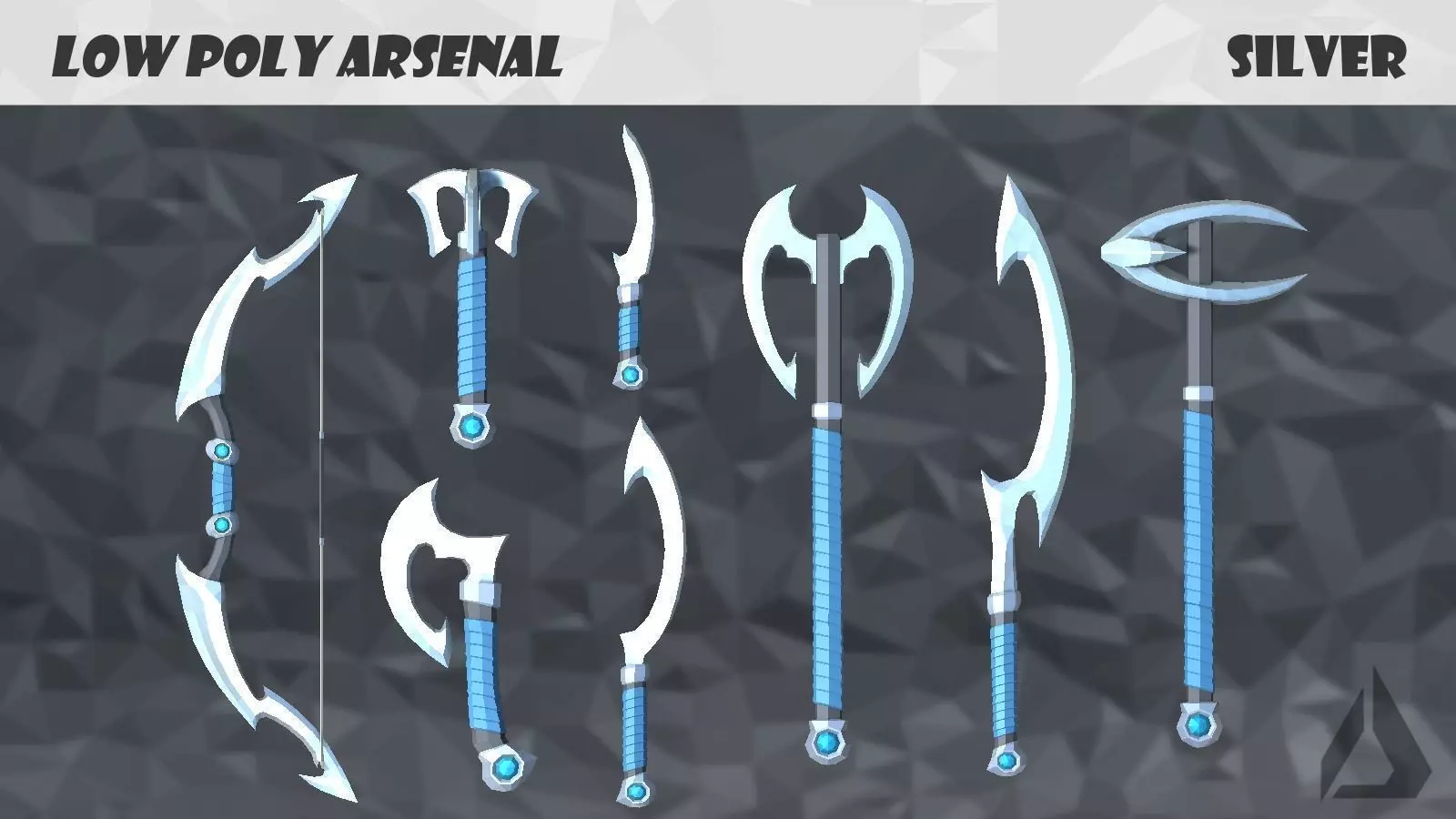 This low-poly styled Unity Package contains 8 weapons: 1 bow, 1 dagger, 1 sword, 1 axe, 1 mace, 1 hammer, 1 war axe and 1 greatsword, and 1 arrow for you to play around with and use in your Game project!