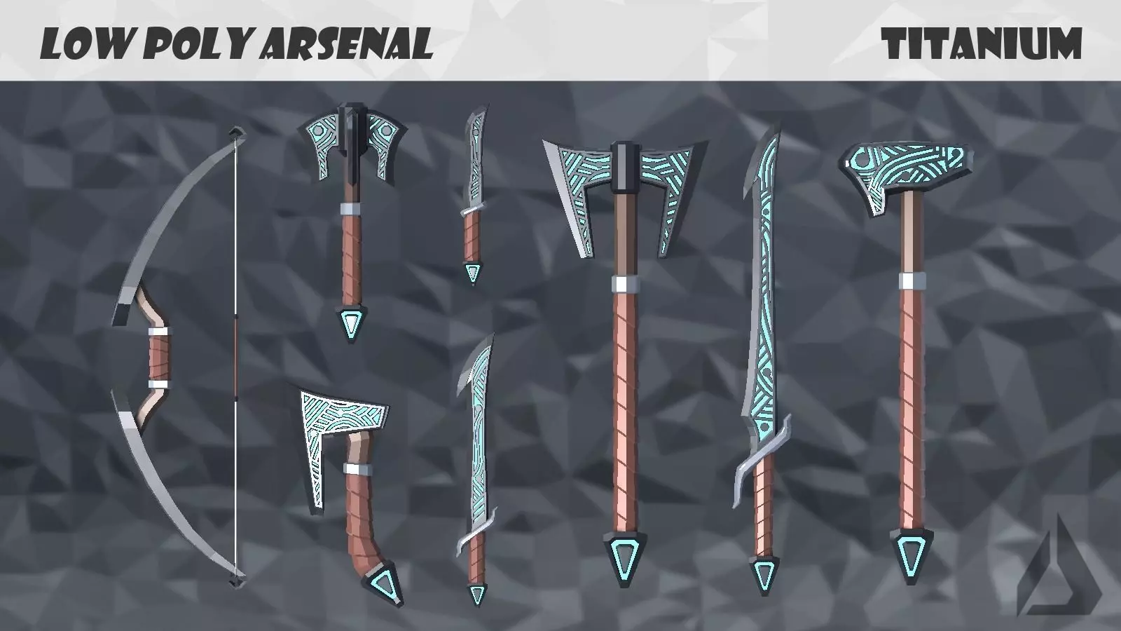 This low-poly styled Unity Package contains 8 weapons: 1 bow, 1 dagger, 1 sword, 1 axe, 1 mace, 1 hammer, 1 war axe and 1 greatsword, and 1 arrow for you to play around with and use in your Game project!