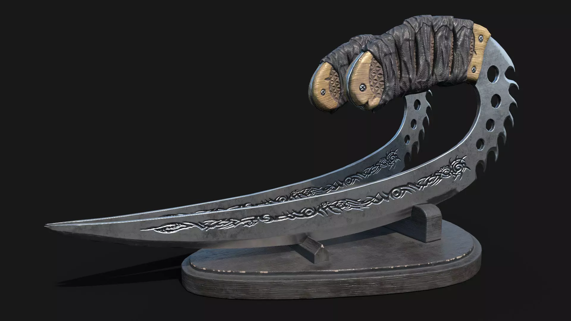 Low-Poly Daggers 3D model with PedestalOne dagger - 1614 tris. Pedestal - 440 tris. Textures - 2048x2048Textures for V-ray and PBR from exported Substance Painter.Render from Substance Painter.Inspired by The Chronicles of Riddick movie.