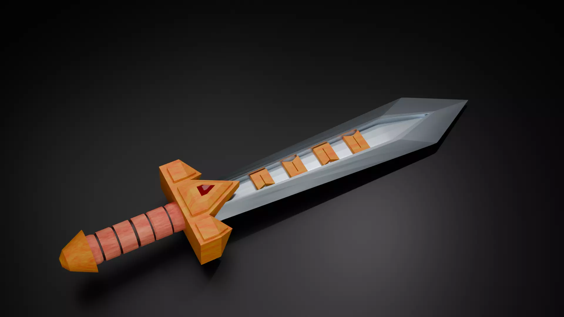 This low poly fantasy sword is a clean, stylized game-ready weapon designed for real-time applications such as games, VR, and AR projects. The model features a sharp, angular blade with decorative inlays and a warm-toned guard and handle, blending a stylized look with realistic materials.