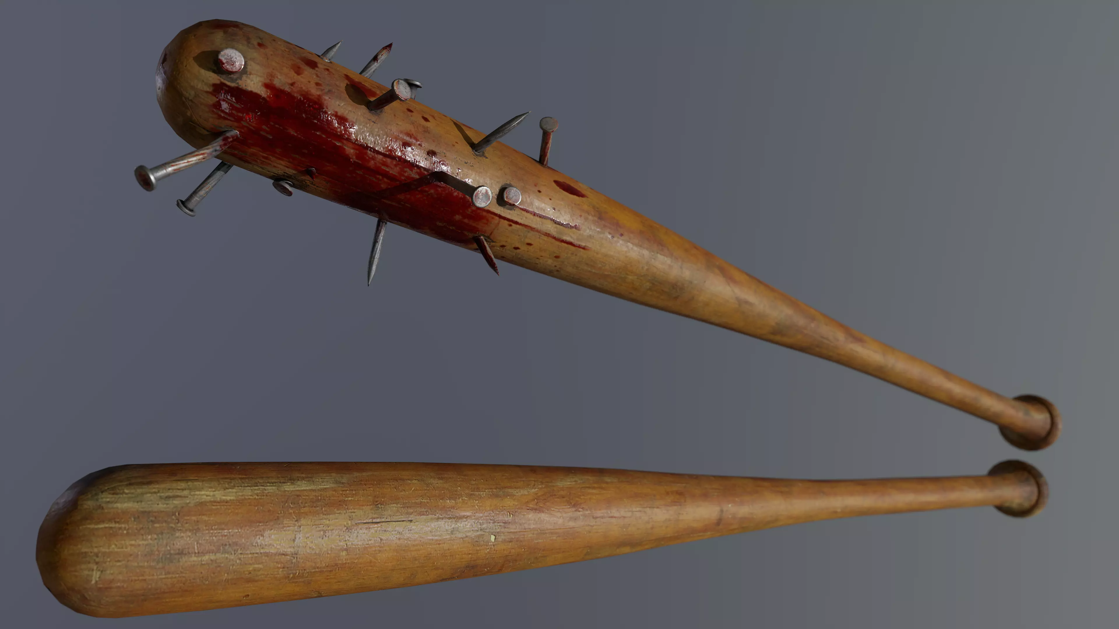 There are two versions of the bat: A standard, unaltered version, and a spiked version with nails. The pack also comes with a bloodless texture set should you not want that aspect in your project.