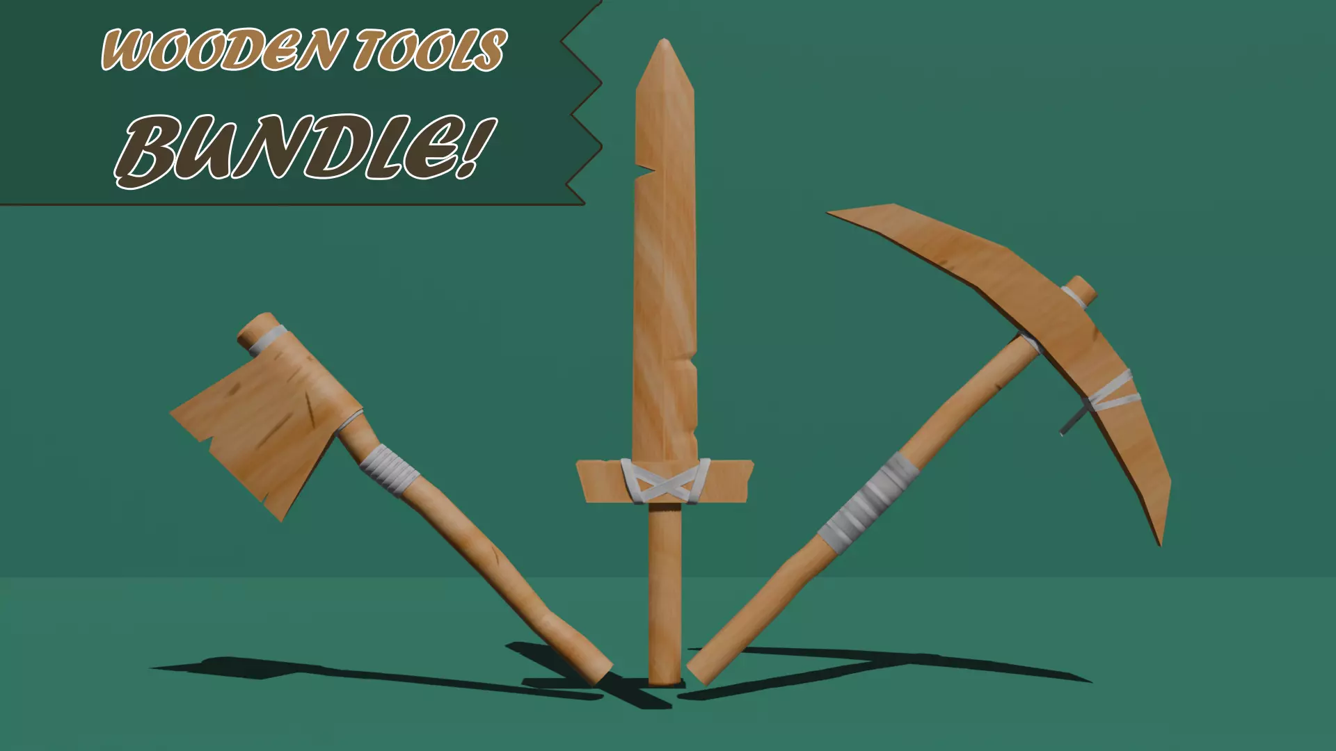Includes Wooden Sword, Wooden Pickaxe, and Wooden Axe.