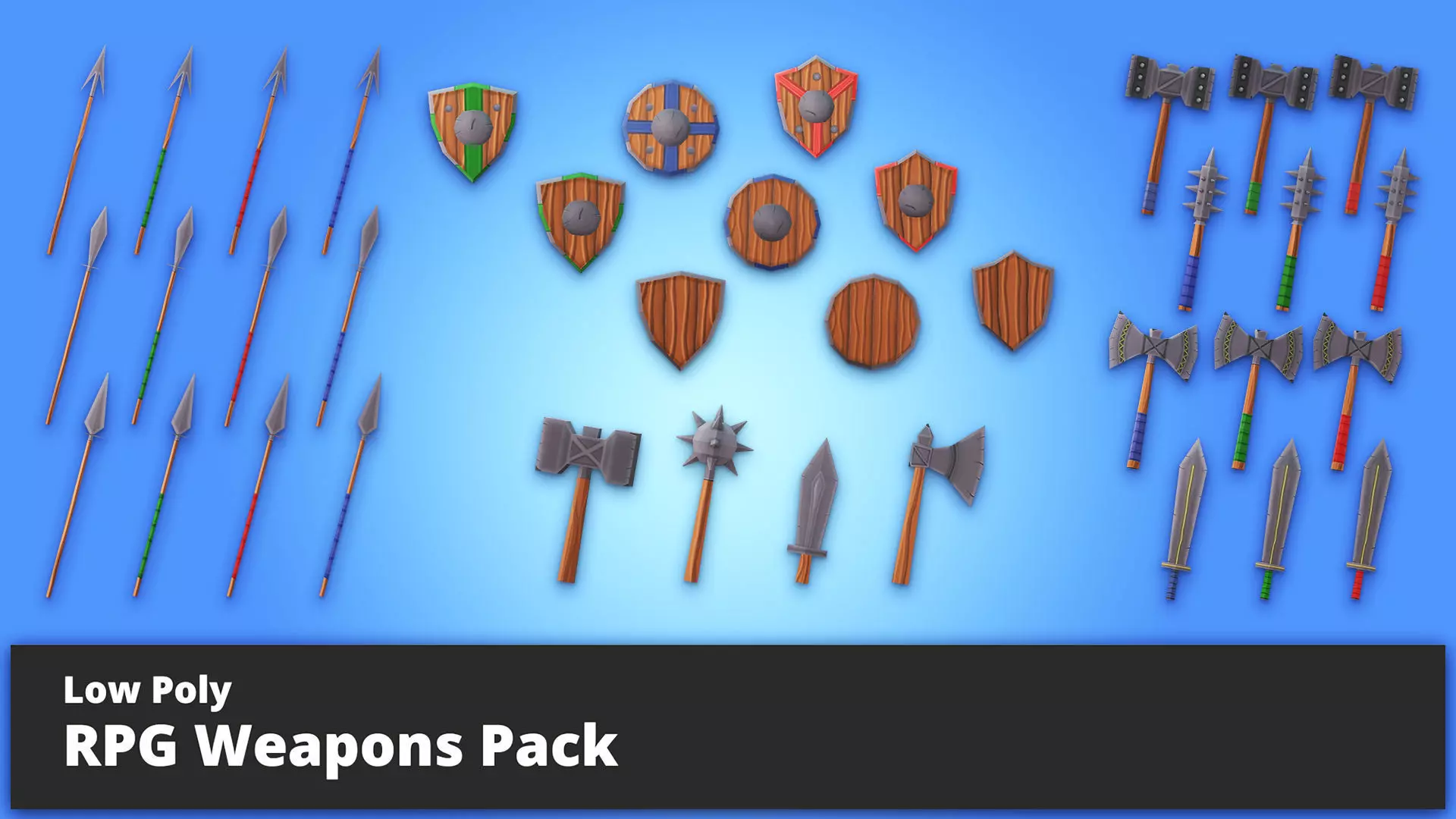 This pack is a collection of 37 unique low poly models with hand-paint textures. All models are ready to put in scene. Use them in RPG, combat or any fantasy-medieval games.