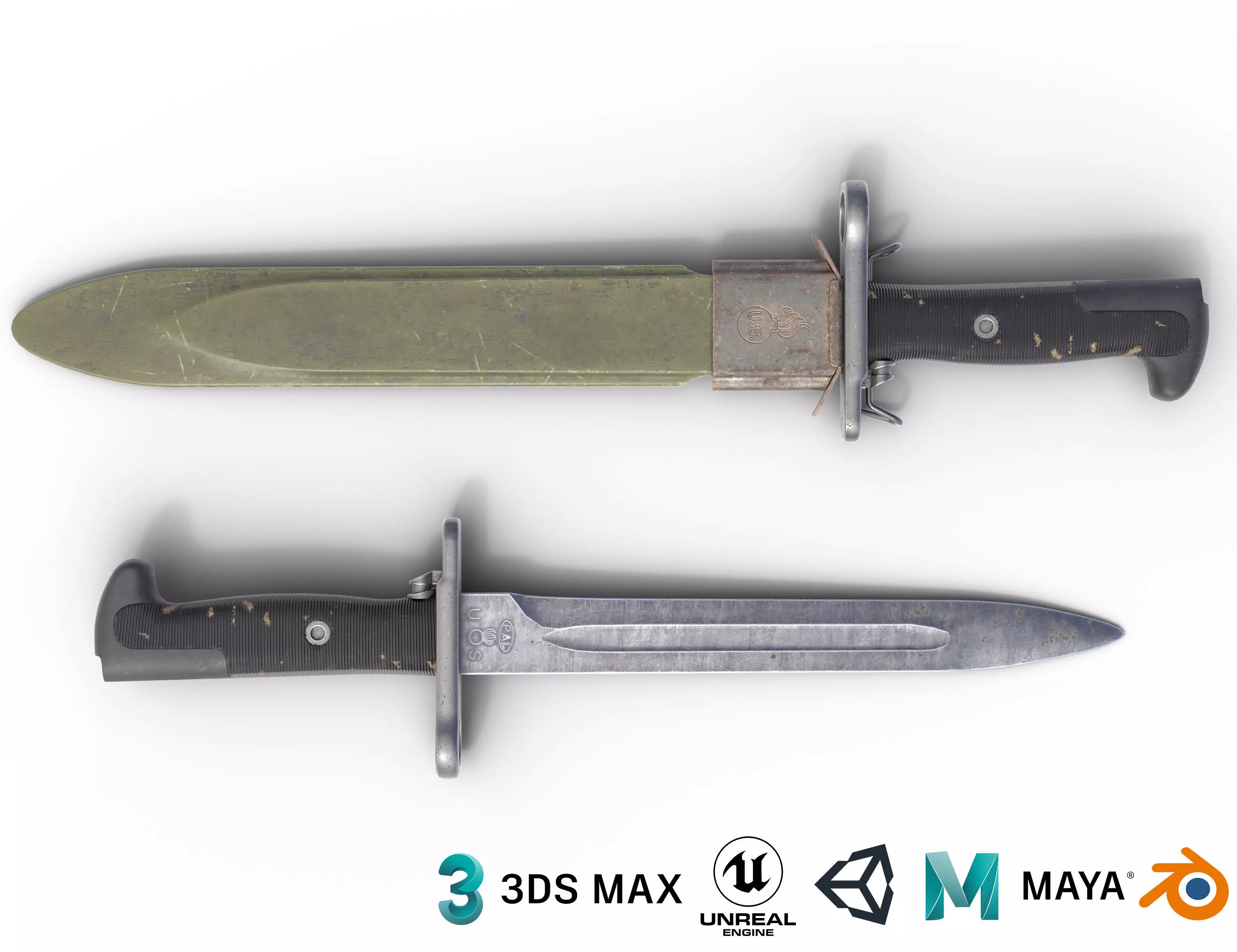 LP model of M1 garand bayonet with high texture resolution. Feel free to use it in your project or or as an in-game asset.Can be used as game asset or render prop in your scene.