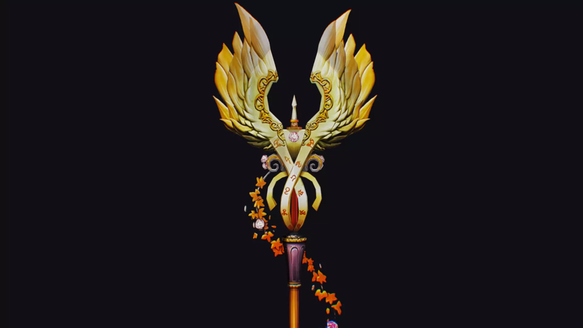 Magical Staff Magic Stick Fantasy Wand Golden Bird Wing Item Low-poly 3D model
