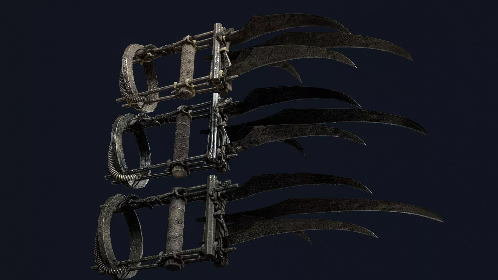 Maniac’s Modular Claws is a terrifying set of assembleable bladed claws designed for horror games, psychotic killers, slasher villains, and dark fantasy assassins. The weapon features sharp, curved blades with a complex mechanical assembly that allows them to look both brutal and disturbingly intricate.