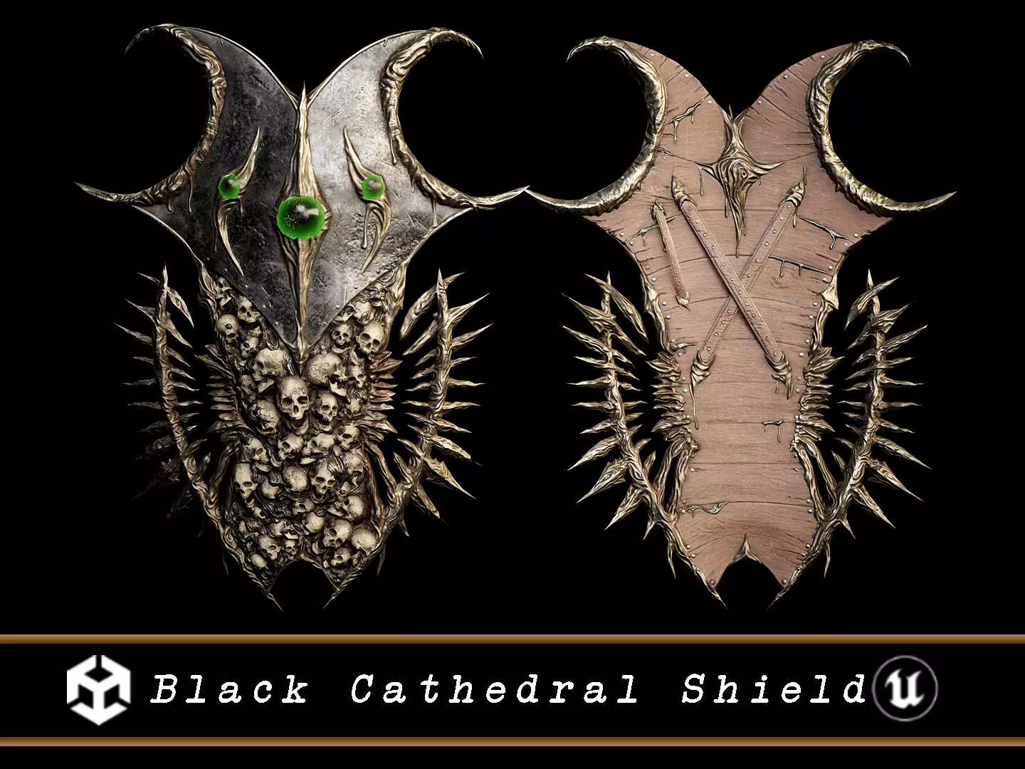 Medieval Black Cathedral Shield 3D Model. This model contains the Medieval Black Cathedral Shield itself