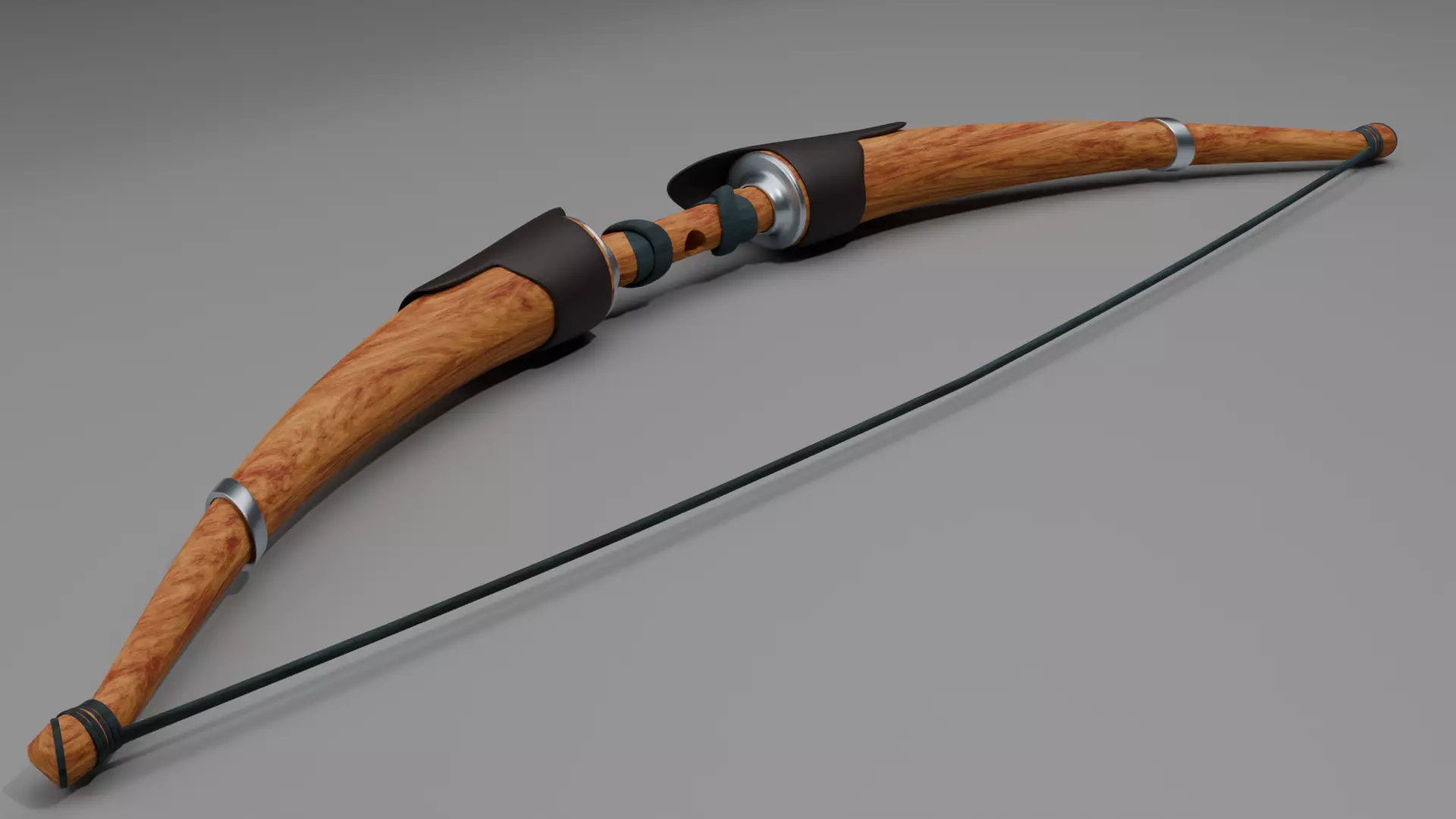 The model is fully UV unwrapped and comes with materials created entirely in Blender, using a PBR workflow to achieve realistic wood grain, leather grips, and metallic fittings. Attention has been paid to surface detail and material contrast, ensuring the bow looks convincing in both close-up renders and in-game use.