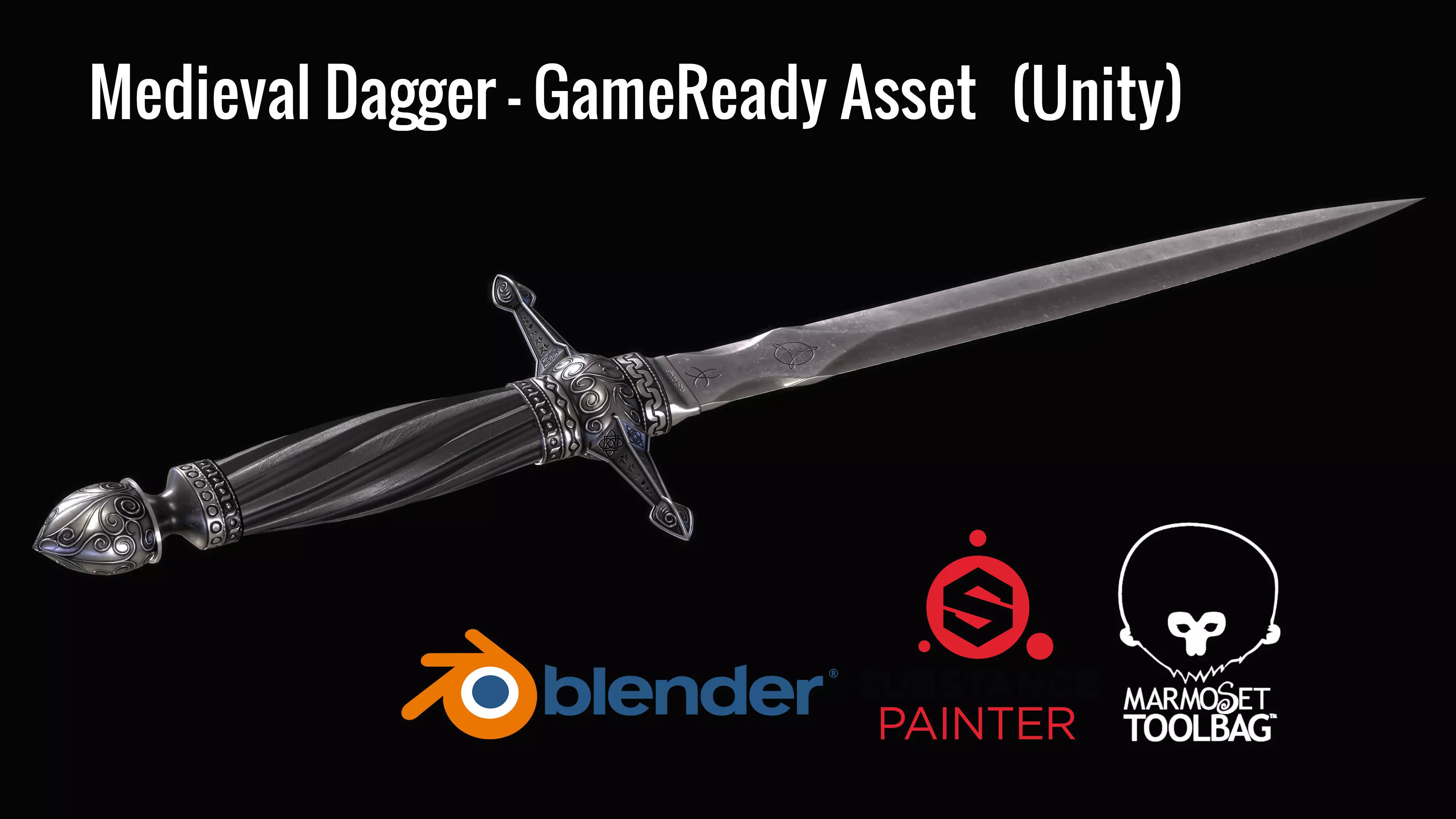 Hi Welcome into my CGtrader Marketplace. and about this product specifically (Medieval Dagger) for Unity, Modelled and Unwrapped on Blender then Baked on Marmoset Toolbag and Textured on Substance Painter and at last Render, Light on Marmoset.