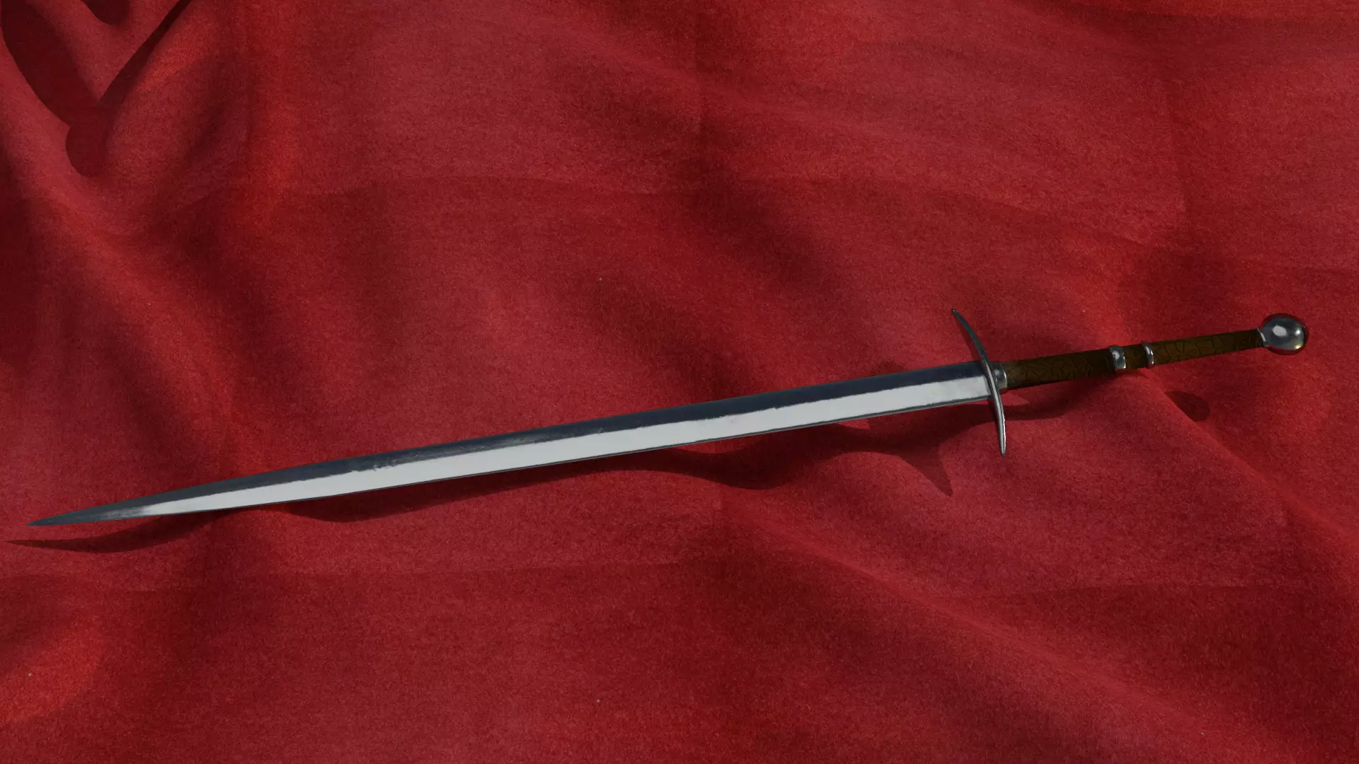 A medieval longsword. 6700 trips and 4k textures: basecolor, normal, height, metallic, roughness. Blender and Substance painter.