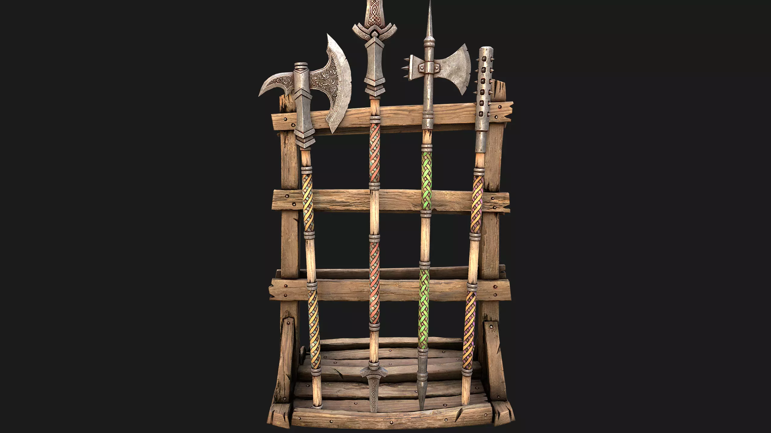 Medieval Weapon Rack Polearm Spear Axe Halberd Mace Set Low-poly 3D model
