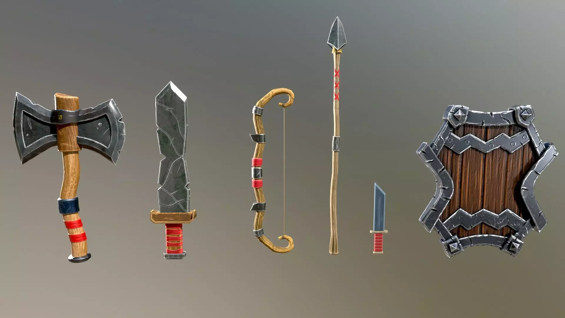 One model from this collection can be downloaded for free: https://www.cgtrader.com/free-3d-models/military/melee/stylized-medieval-old-spear