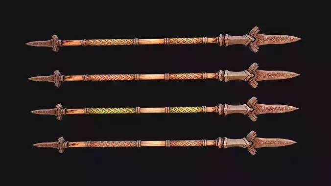 Game ready model .The model contains lods, detailed information on the images.Stylized and detailed Medieval Wooden Spear fully textured, sculpted and rendered with Physical based rendering (PBR) - Shown images have been rendered in Marmoset Toolbag .The set contains a model of a Spear.The model has 4 color options.