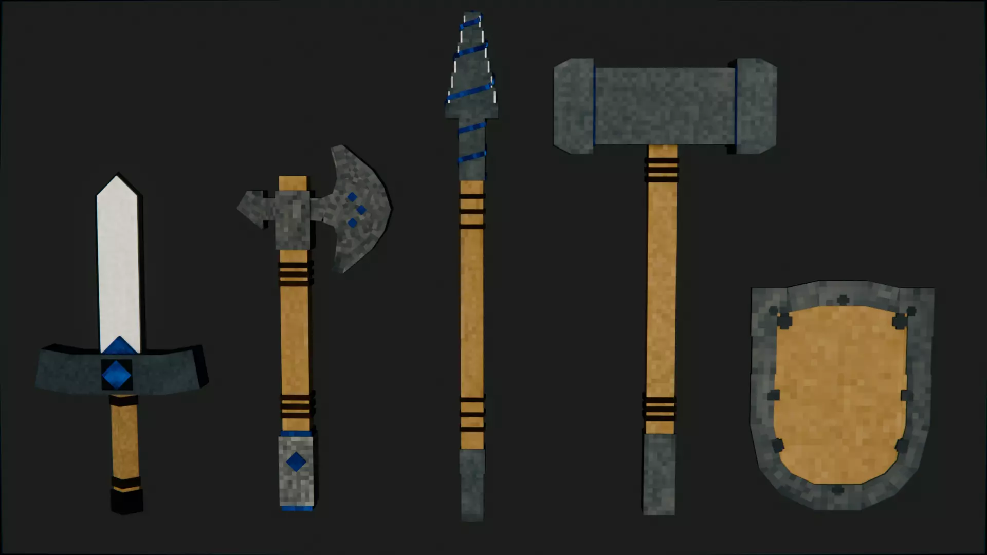 All models are Minecraft-styled and optimized for animations. Weapons are easy to import into your Blender projects and can be used right away in your scenes.