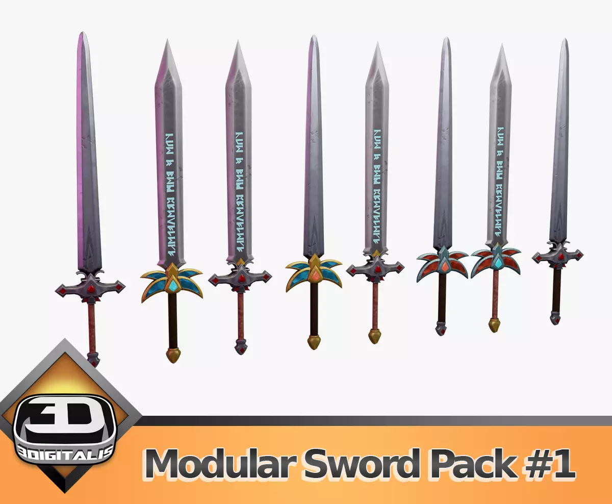 These modular 3D swords are ideal for game projects and other 3D applications. Each sword is divided into four interchangeable parts: blade, crossguard, grip, and pommel. This modular design allows you to mix and match parts to create a variety of unique swords, ensuring a perfect fit and seamless integration with each configuration. The swords are highly optimized and game-ready, designed to provide excellent performance in any gaming environment. Whether for PC, console, or VR/AR applications, these versatile 3D models will add a dynamic and customizable element to your projects.