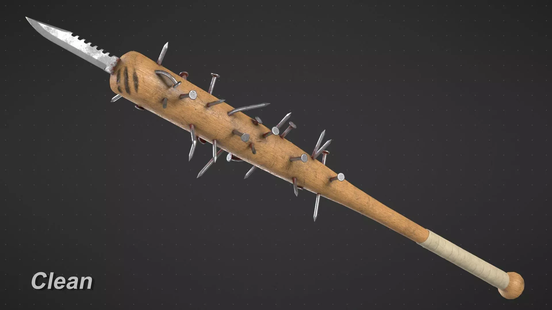 This is a low-poly game-ready model of a nailed baseball bat with a serrated knife attached to the tip available in 2 stages: clean & bloody