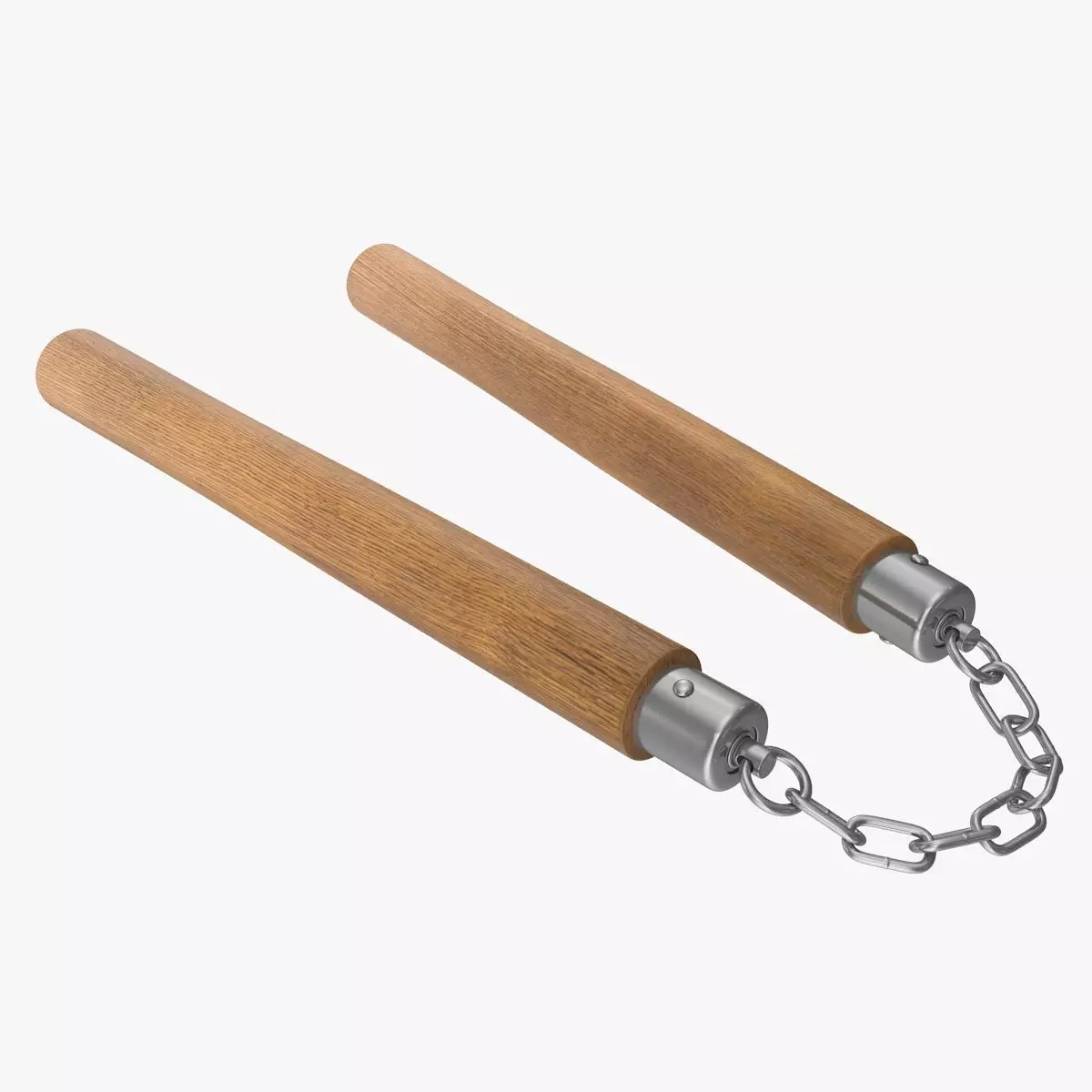 Nunchaku two wooden handles attached to chain Low-poly 3D model
