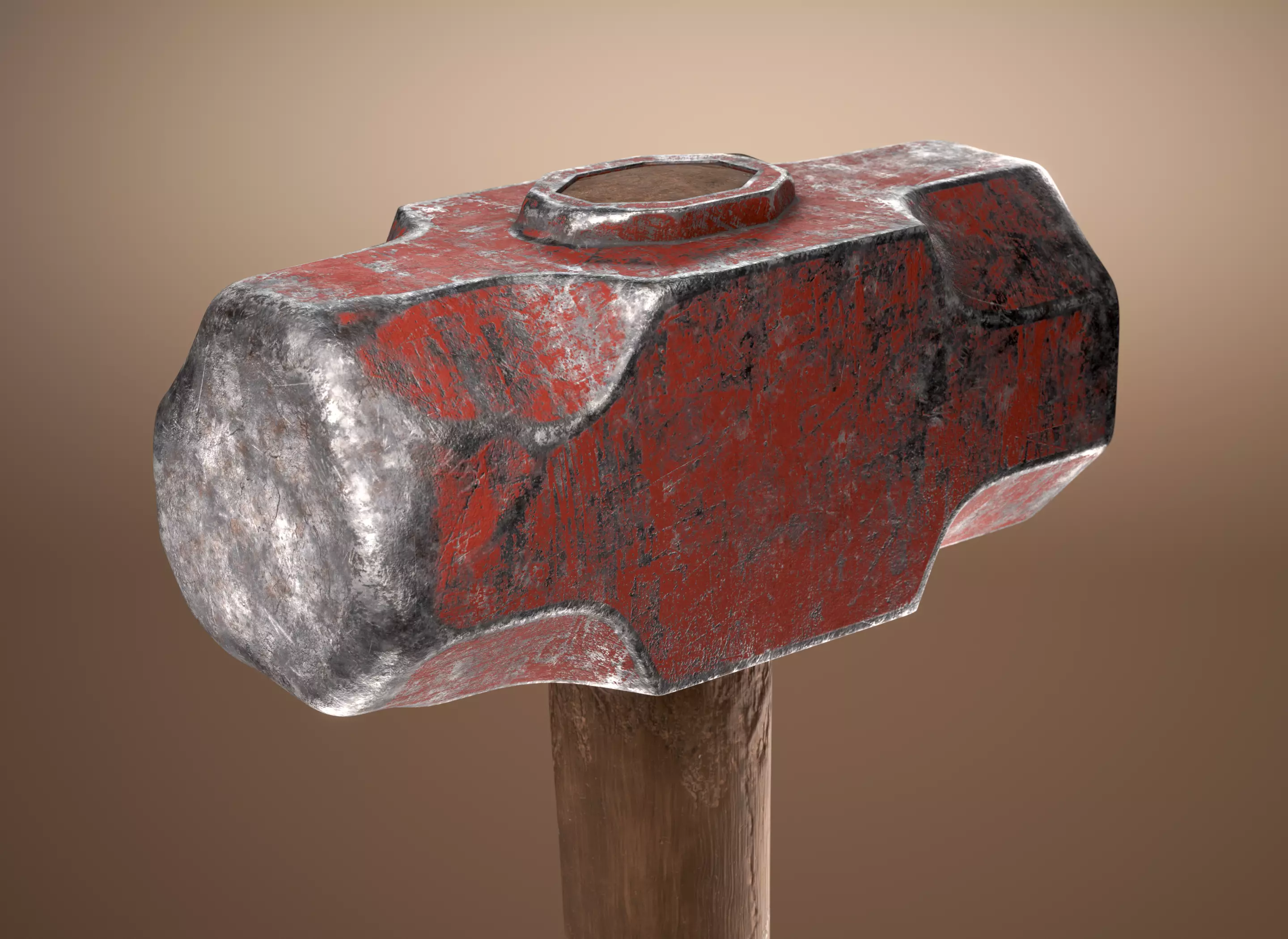 A sledgehammer !Be ready to demolish walls and put some pillars in the dirt. But, in my opinion, it's much better when used to bash an enemy's head in video games ! The model is made so that it has been used a lot, you can see the wood starts to become darker with time, and the head of the sledgehammer as a lot of impacts, the paint is scratched and the metal parts are worn.