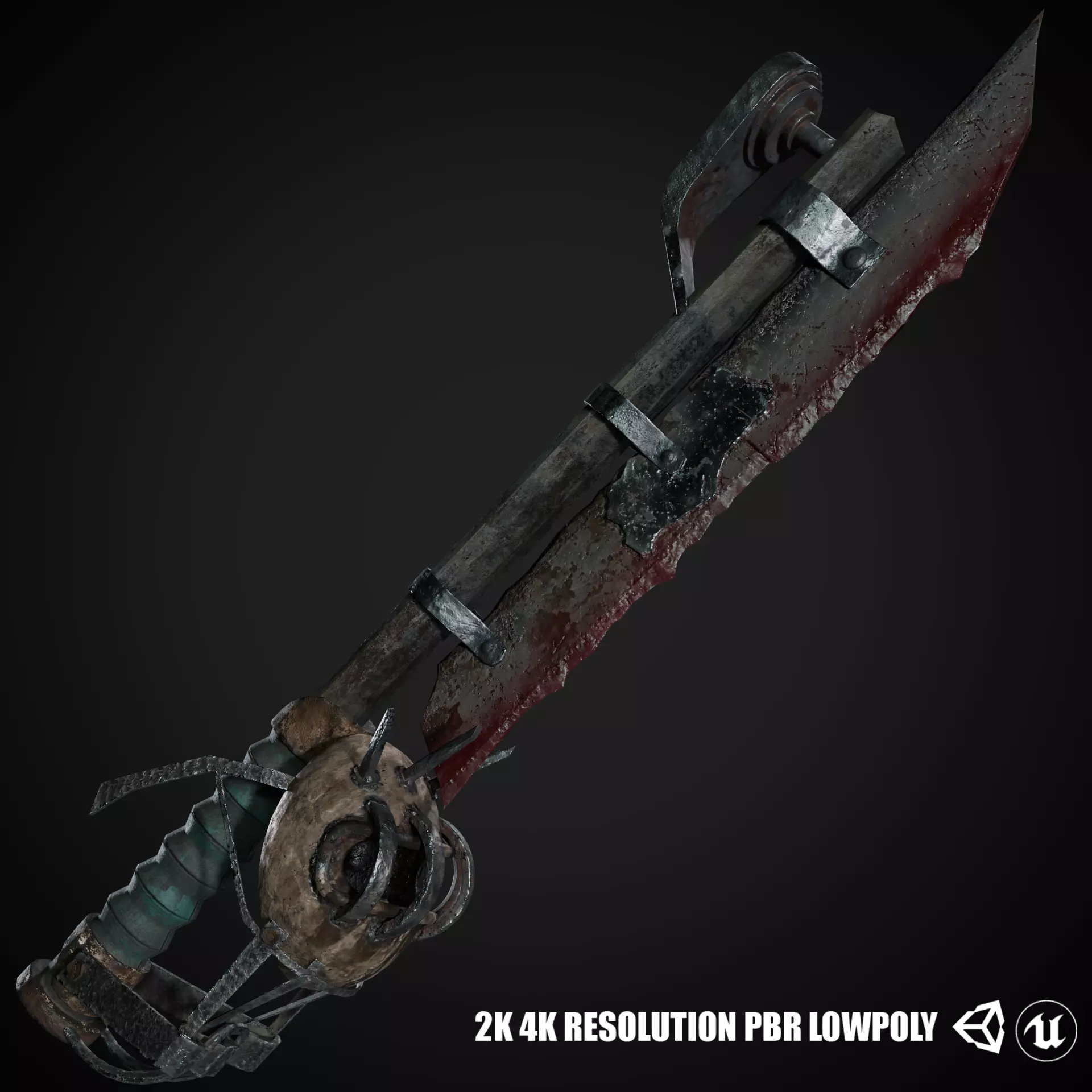 Unleash chaos with this savage post-apocalyptic scrap sword — a brutal fusion of rusted metal, bolted plates, and makeshift engineering. Featuring a jagged, oversized blade and a reinforced grip constructed from scavenged parts and industrial materials, this weapon oozes raw power and survivalist craftsmanship. Ideal for gritty characters, boss enemies, or player gear in dystopian worlds.
