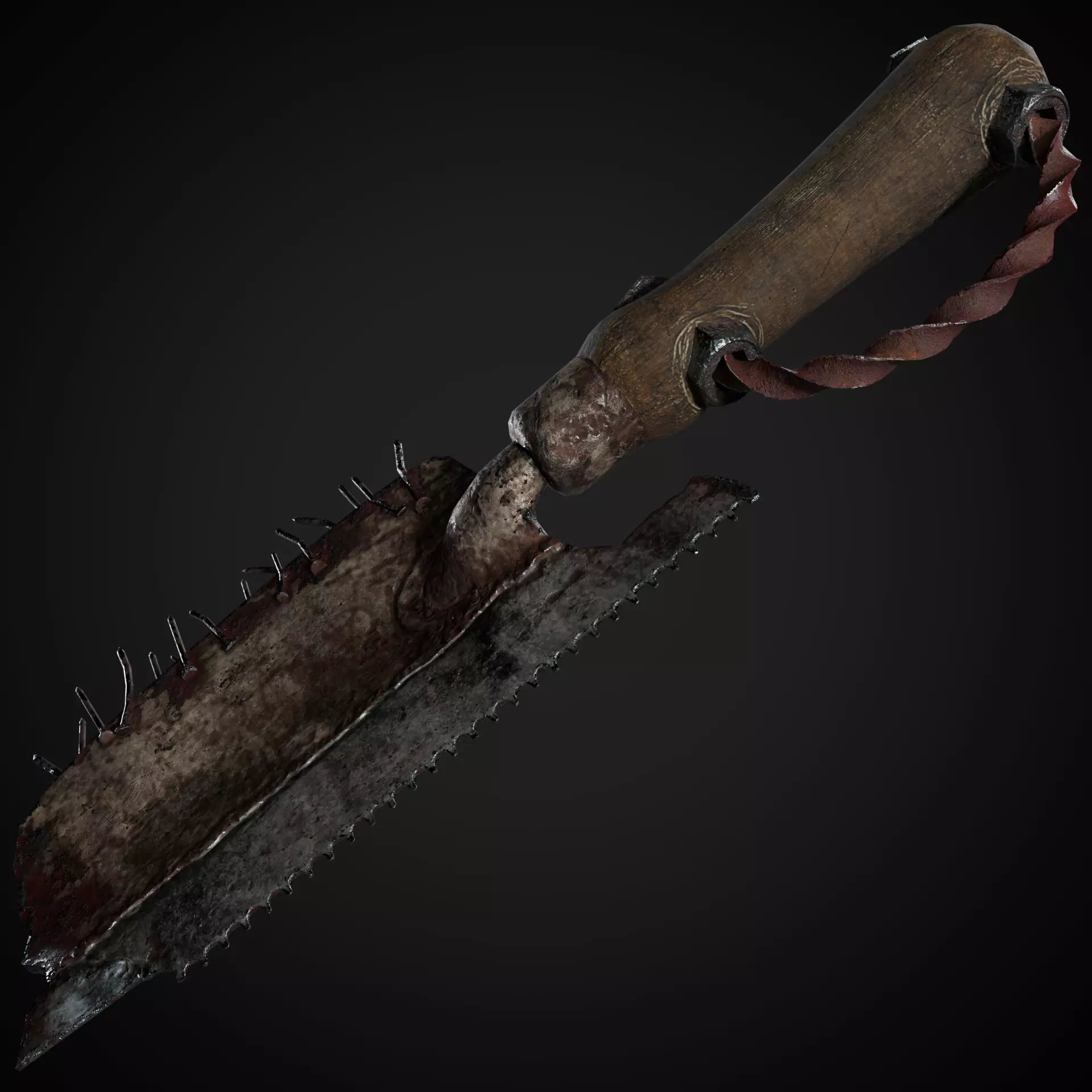 Bring gritty realism to your survival or horror-themed game with this highly detailed Post-Apocalyptic Spiked Cleaver. Crafted from salvaged materials, this brutal melee weapon features a rusted, bloodstained blade embedded with sharp metal spikes and a twisted metal handle, making it perfect for close combat in dystopian settings.