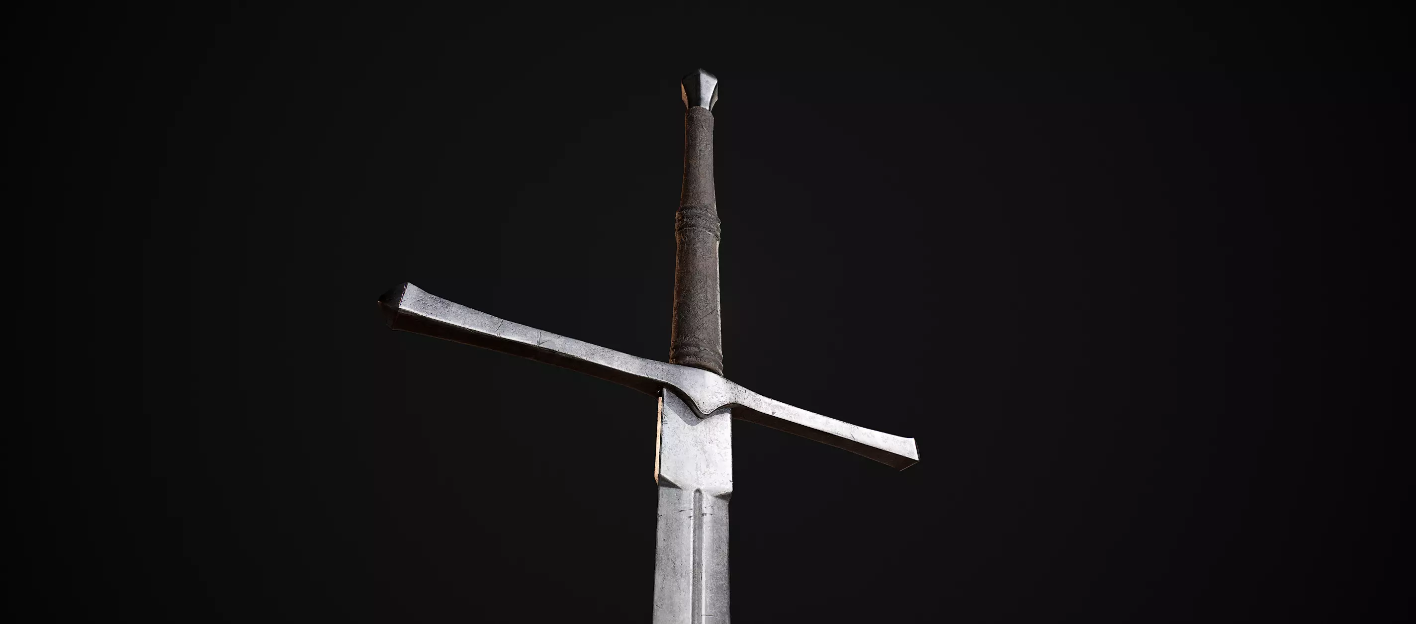Highly detailed PBR two handed Greatsword with a leather grip and slight aging/damage.