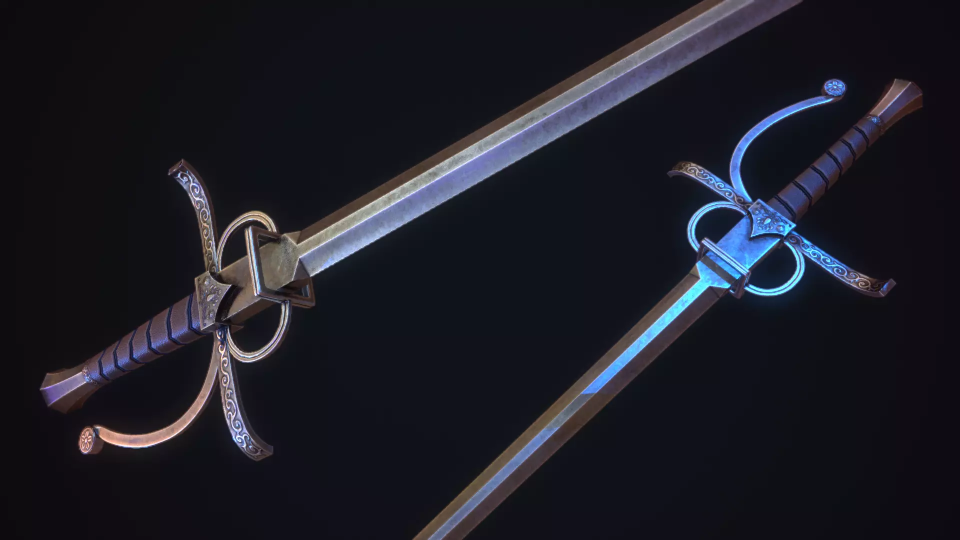 Italian Renaissance Sword 1480-1520 game ready for either games or simulations.The lenght is about 1.40 meters or 55 inches.The spada da lato (Italian) or side-sword is a type of sword popular through the 16th century. It is a continuation of the medieval arming sword, and the immediate predecessor (or early form) of the rapier of the Early Modern period. Its use was taught in the Dardi school of Italian fencing, and was influential on the classical rapier fencing of the 17th century. The equivalent Spanish term, espada ropera (dress sword) is the origin of the term rapier.[citation needed] Italian antiquarians use the term spada da lato for rapiers typical of the period of c. 1560–1630, the Italian term for the fully developed rapier of the later 17th century is spada da lato striscia, or just spada striscia strip-sword.