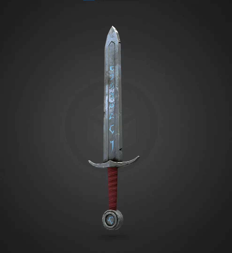 A steel sword carved fantasy-style runes. I aimed to achieve both a realistic texture, and a fantasy feel.Technical means:Mesh - FBXTexture - Base color, Normal, Metalness, Roughness, Emission (2048 * 2048px, PNG format)