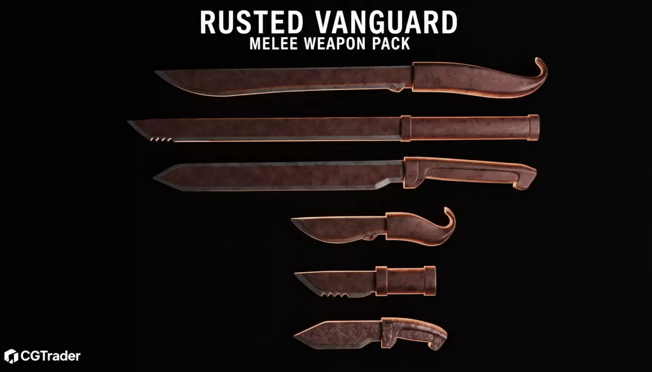 Equip your digital world with the Rusted Vanguard, a collection of six meticulously crafted melee weapons that blend brutal utility with the weathered beauty of decay. This pack features a versatile range of blades—from compact tactical daggers to heavy-duty long blades—each telling a story of survival through their realistically rusted and pitted textures.