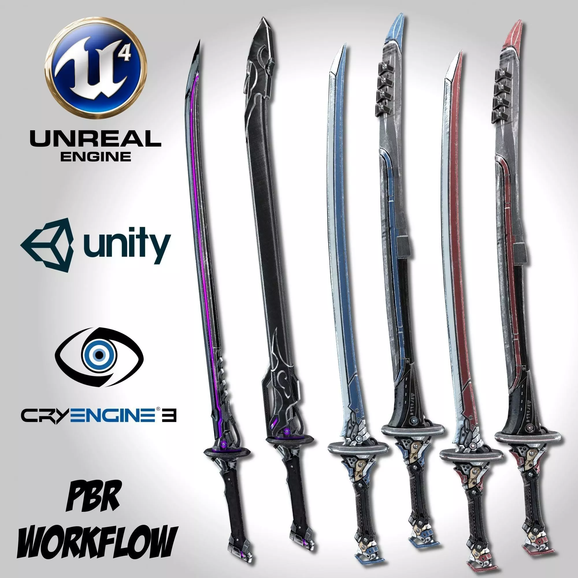 Sci-fi Swords Pack 3 Low-poly 3D model