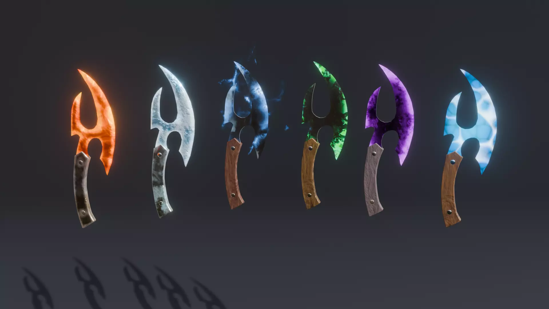 Set of 6 Elemental Daggers - Fantasy medieval weapon Low-poly 3D model