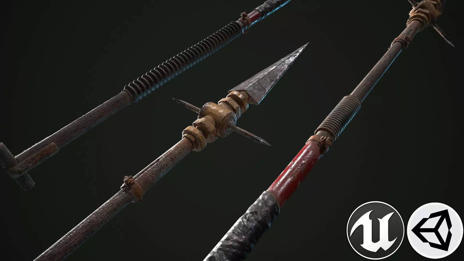Spear - 3d model ready for Virtual Reality (VR), Augmented Reality (AR), games and other real-time apps. Textures made for PBR shader system. Includes several modifications.