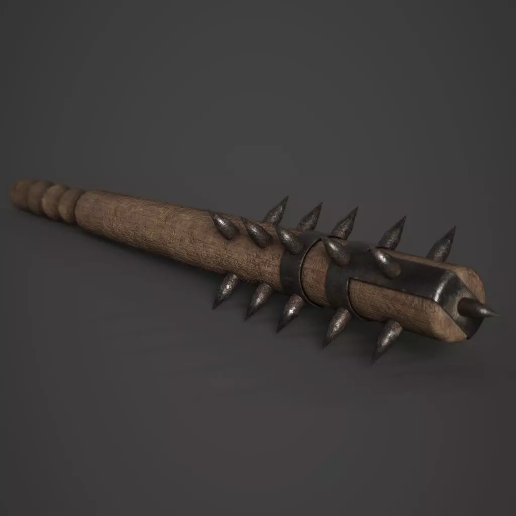 Game ready spiked wooden club made using high to low poly baking.