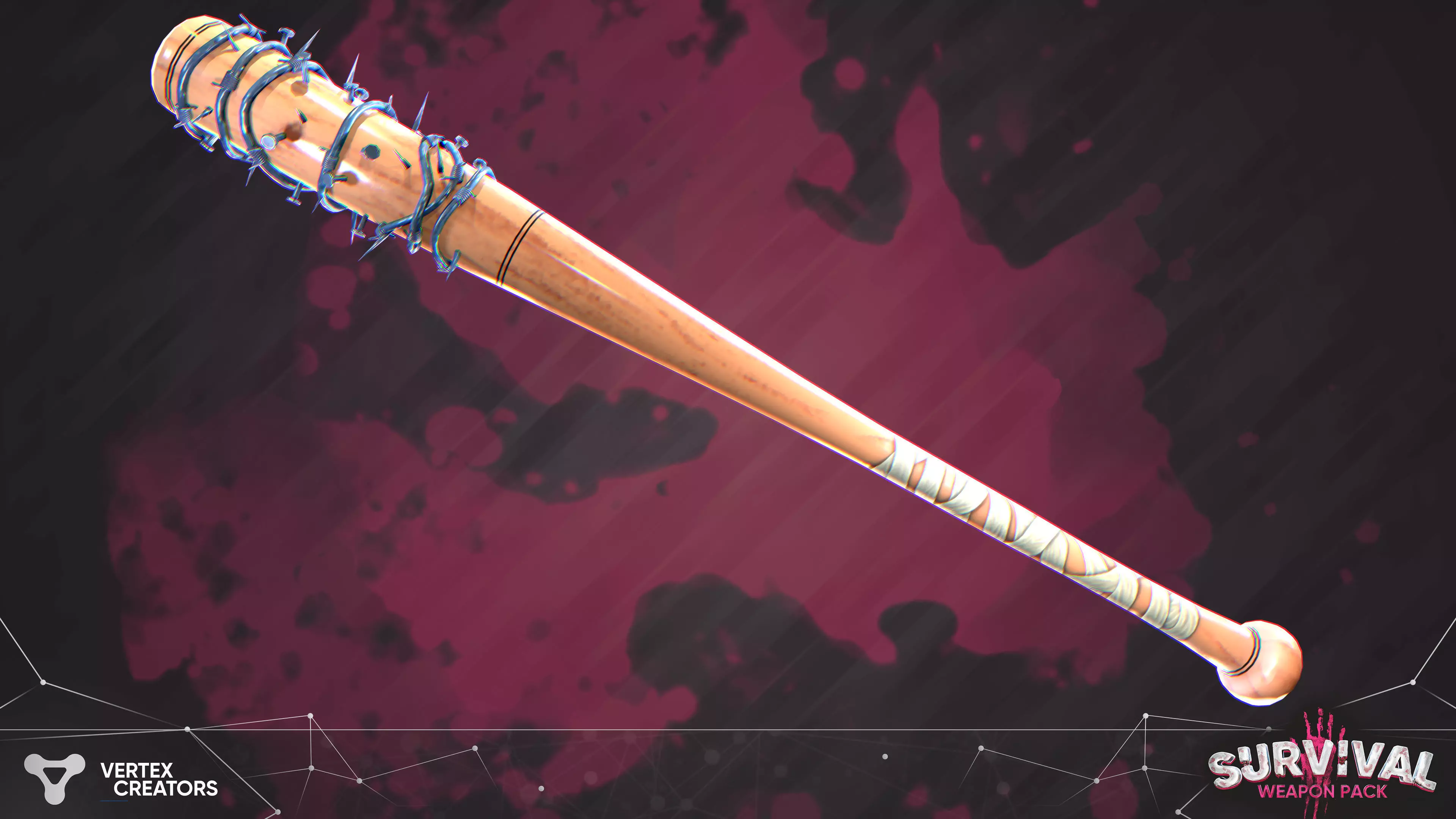Stilized Survival Baseball bat Low-poly 3D model