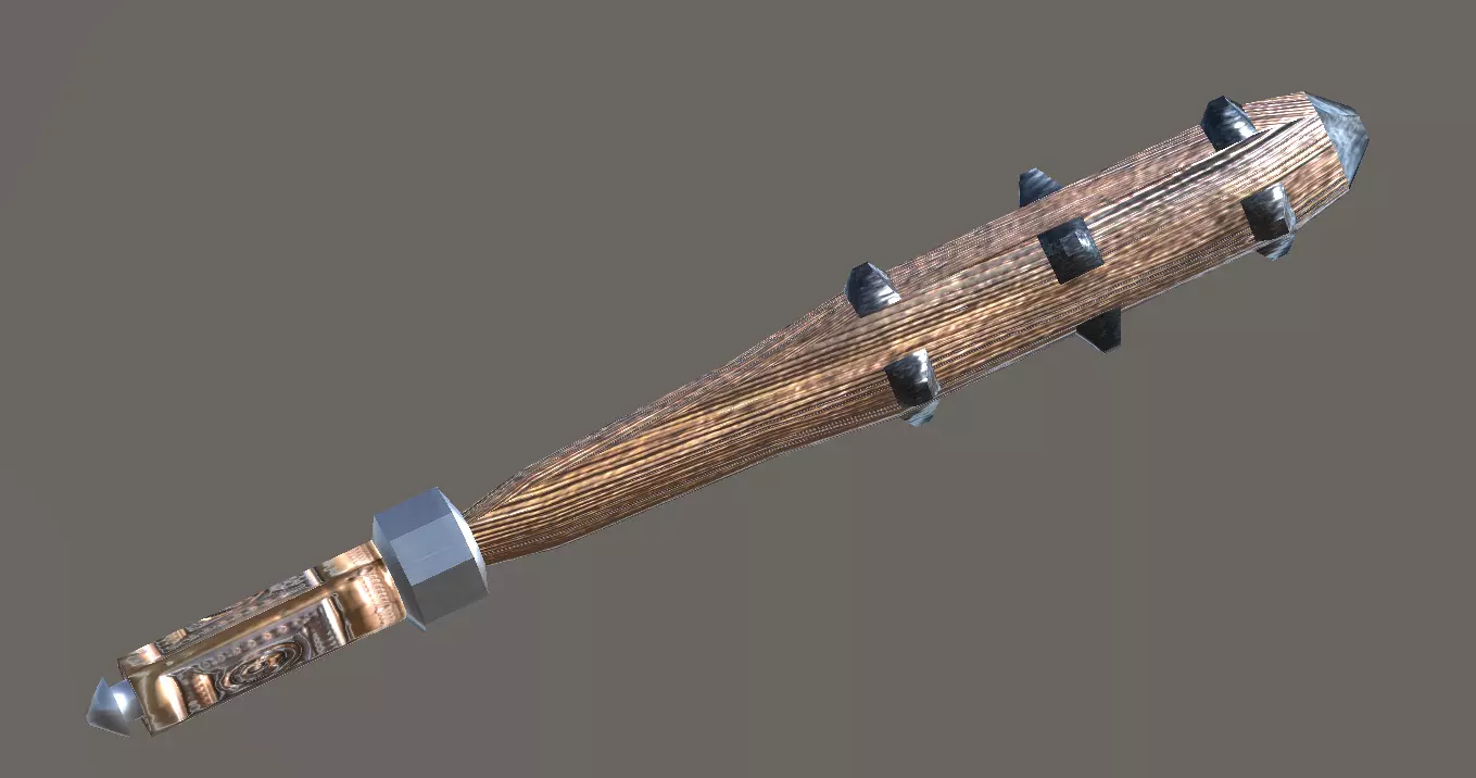 The medieval studded club model is suitable for any visual production, broadcast, high-res film closeups, advertising, games, design visualization, etc.-Game and video ready-Low poly studded club-UV unwrapped.-Textures can be easily modified.-All textures and materials are included.-Ideal for game and advertisement. -Display images were captured from blender and Unity3d. (not rendered)-Organized files and labeling-No modification needed, import and go.-Created in Blender. File includes .blend, .obj, .fbx, .MTL, Normal and Diffuse texture.