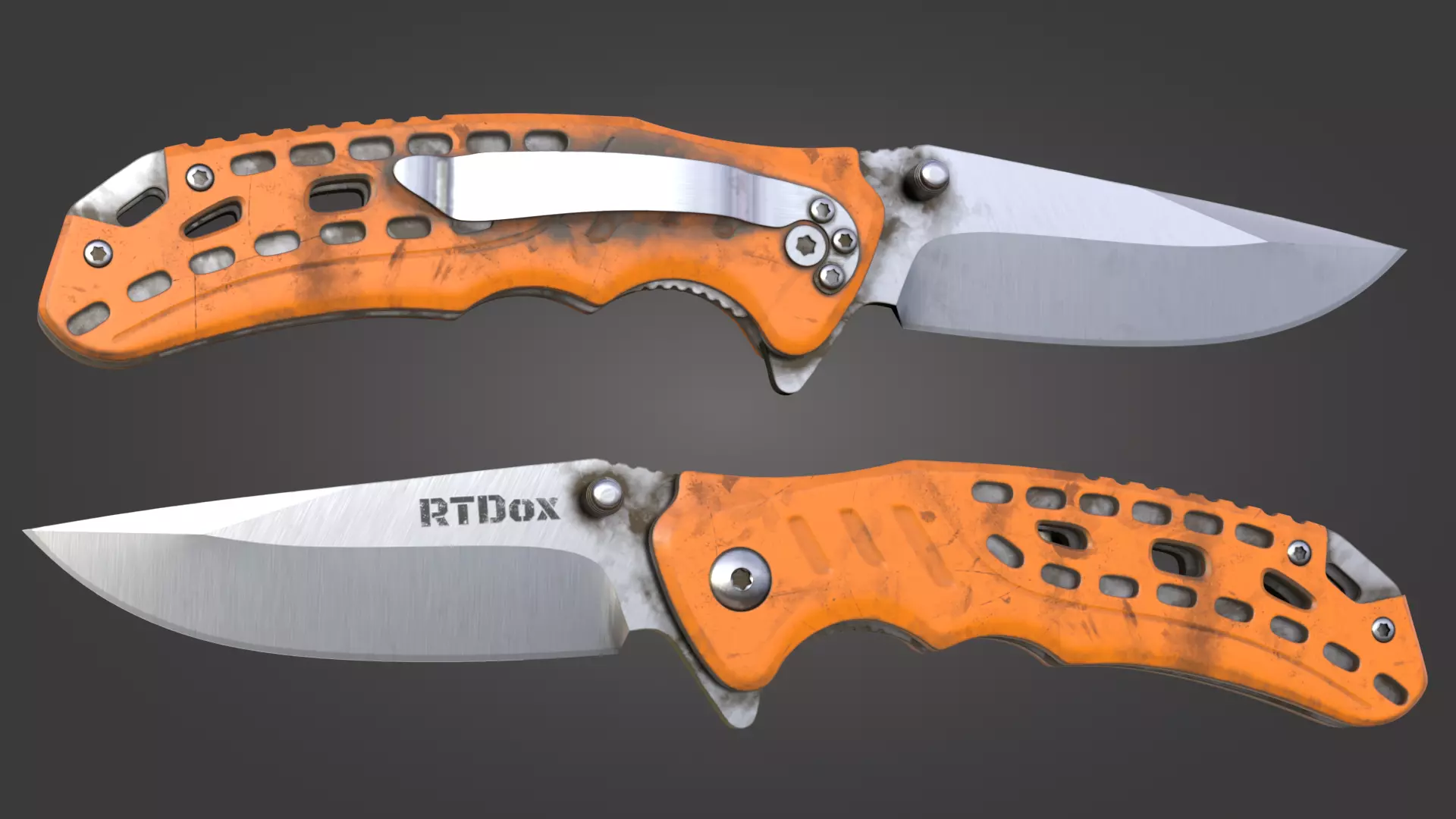 Stylish Orange Folding Pocket Knife Rigged Animated Game Ready Low-poly 3D model