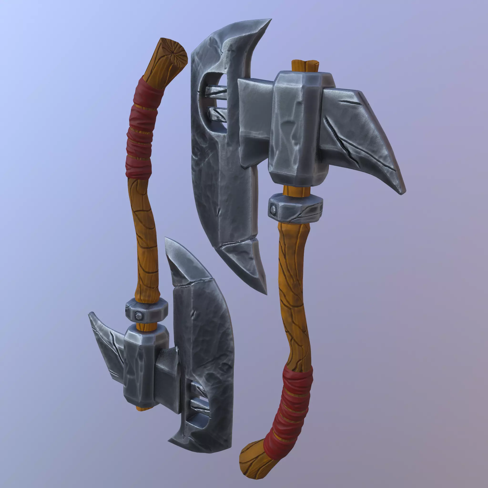 hi,This stylized 3D axe would be a visual marvel in any 3D environment, whether for a game, animated movie, or as a collectible model.features a bold, oversized blade with sharp, geometric edgess.texture size : 4096*4096Textures sets:PBR metallic roughness