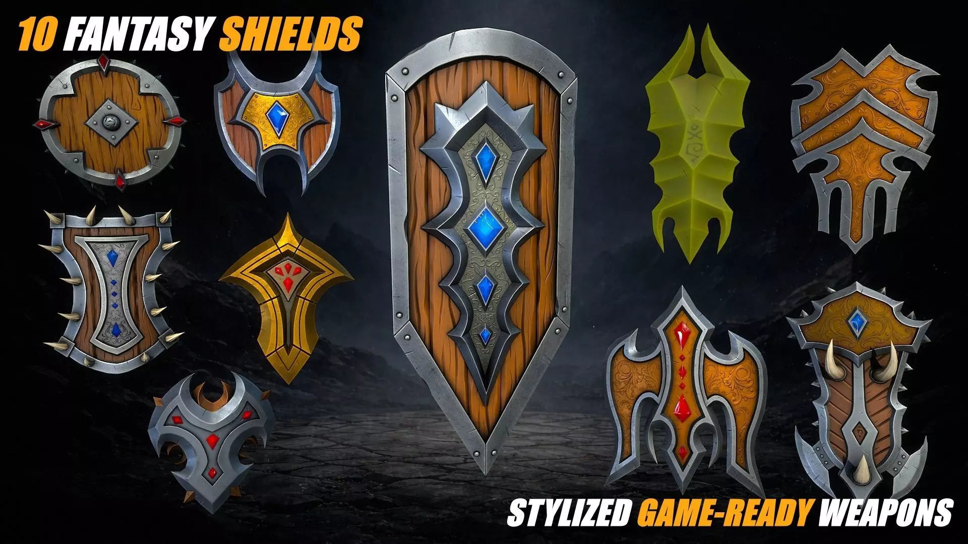 A high-quality stylized fantasy weapon pack featuring 10 unique shields designed for RPG, fantasy, and stylized game projects.Each weapon is crafted with clean topology and detailed 4K PBR textures, making the pack suitable for real-time use, cinematics, or rendering workflows.