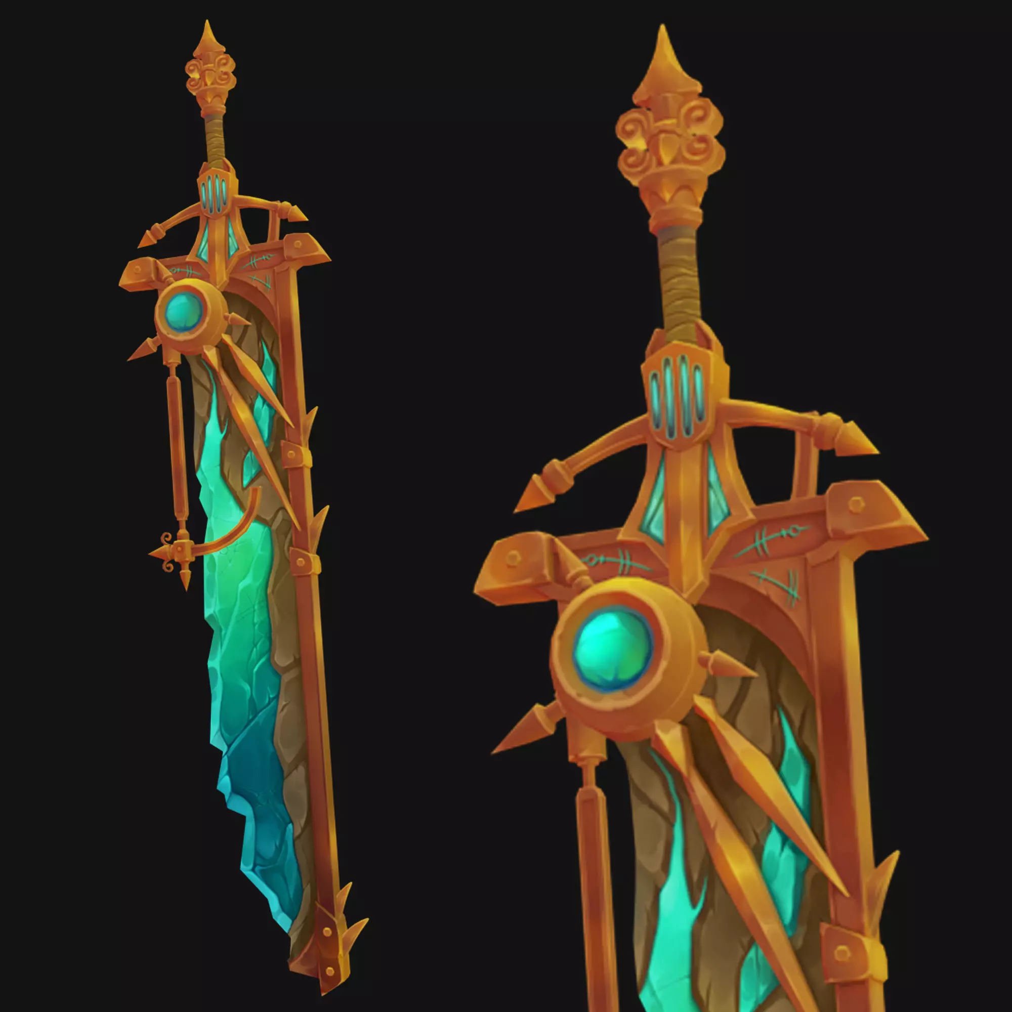 Handpainted stylized 3d model. This sword was created in zbrush 2021.7.1 It was created for multi-purpose use: handpainting, study, rigging and animation, high poly sculpts, unique prop design.