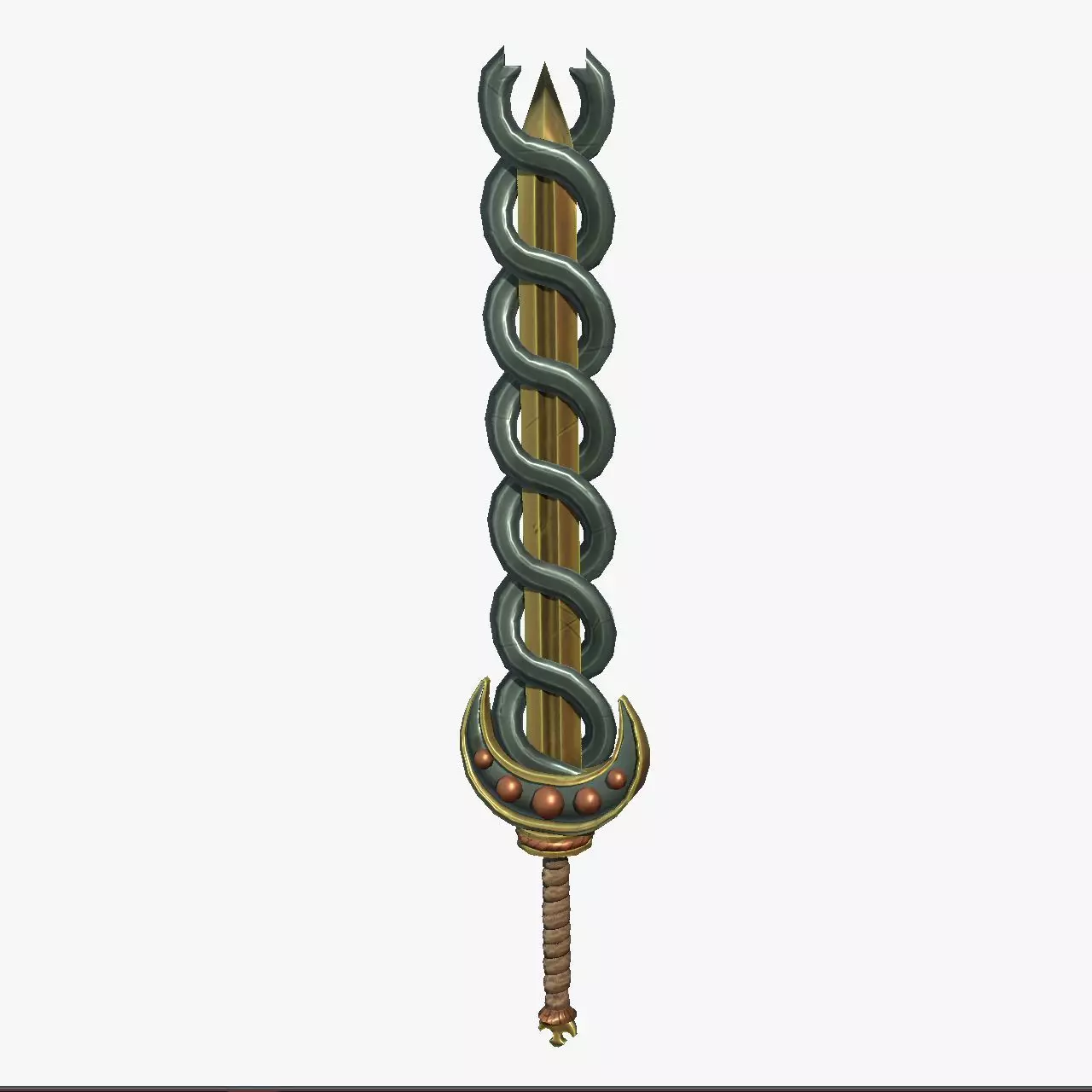 A low poly, stylized brass and green steel longsword.Modeled in Maya, detail added in ZBrush, textured in Substance Painter.All textures are 2048x2048 pngsMixed and seperate PBR maps includedIncludes FBX, OBJ, MTL files