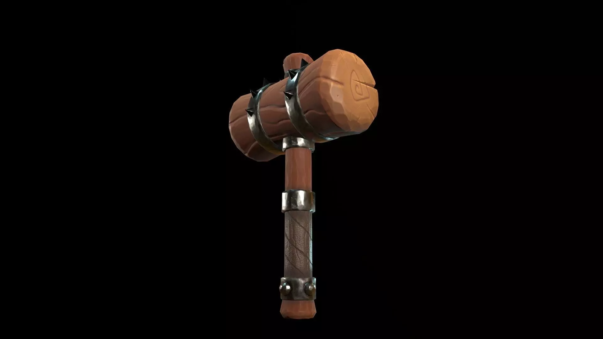 Stylized Hand-Painted Low Poly Weapon Prop. Cartoon hammer weapon for fantasy medieval setting.