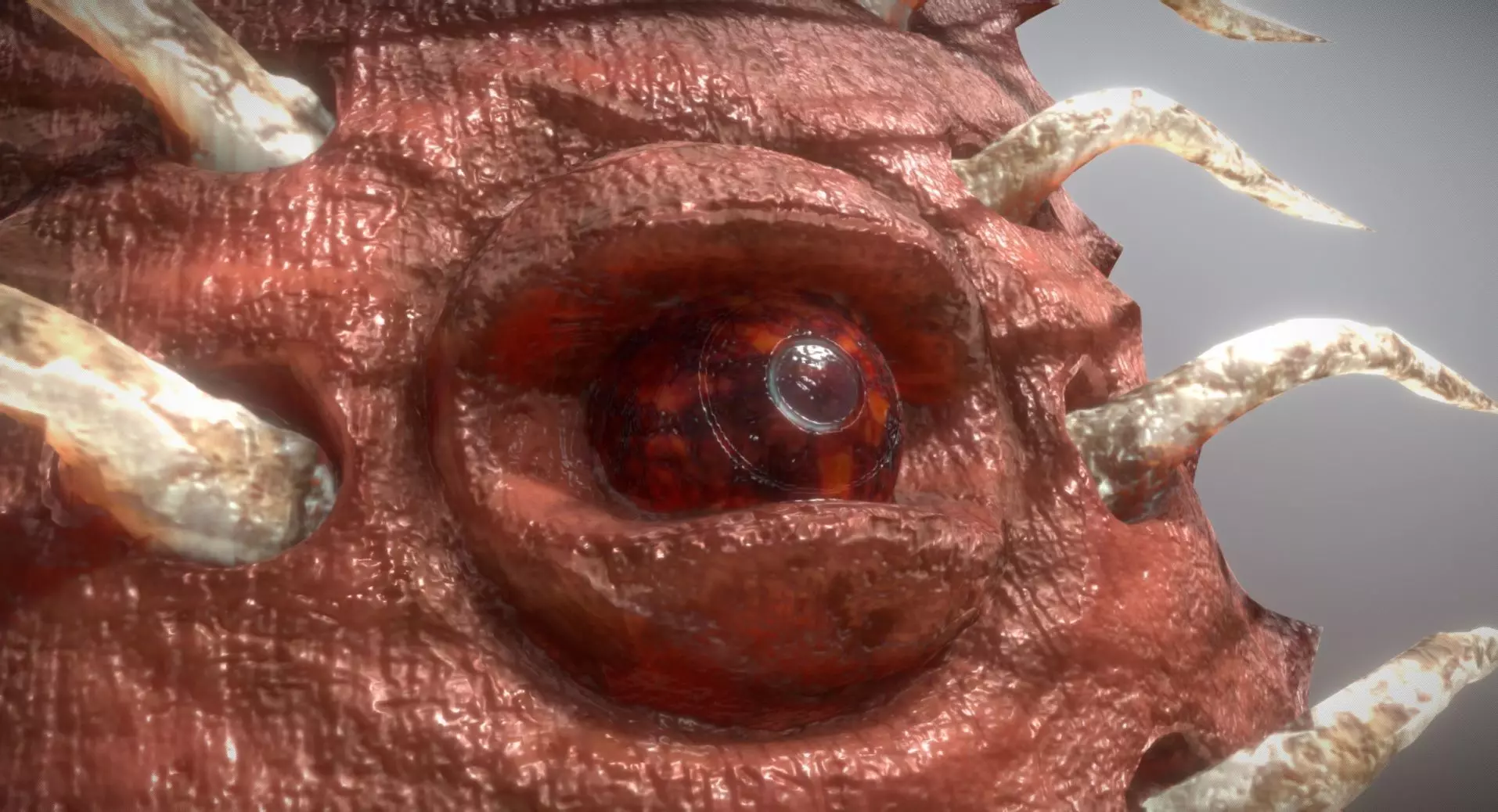 A fantasy tower shield crafted from the flesh of a fallen demon, with a glowing obsidian eye placed in the center. A tower shield sculpted in ShapeLab! A creepy demonflesh shield for your game!
