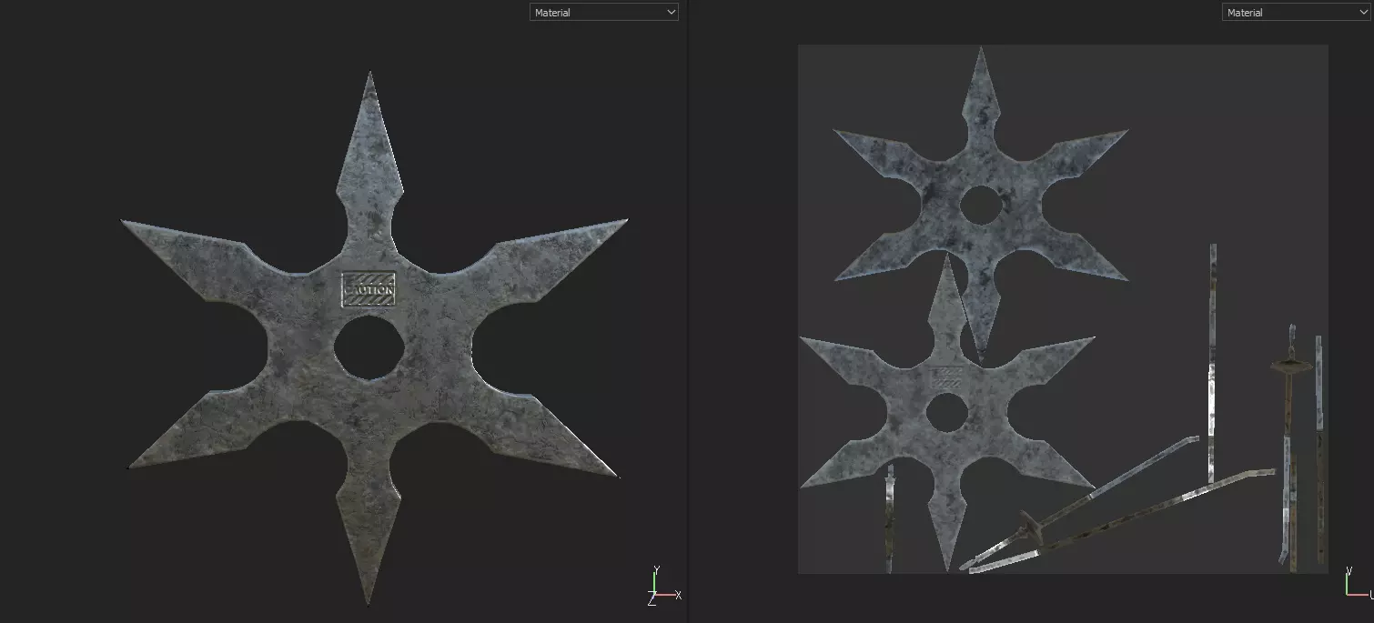 The model has material settings that define how surfaces look (color, shine, transparency, etc.).