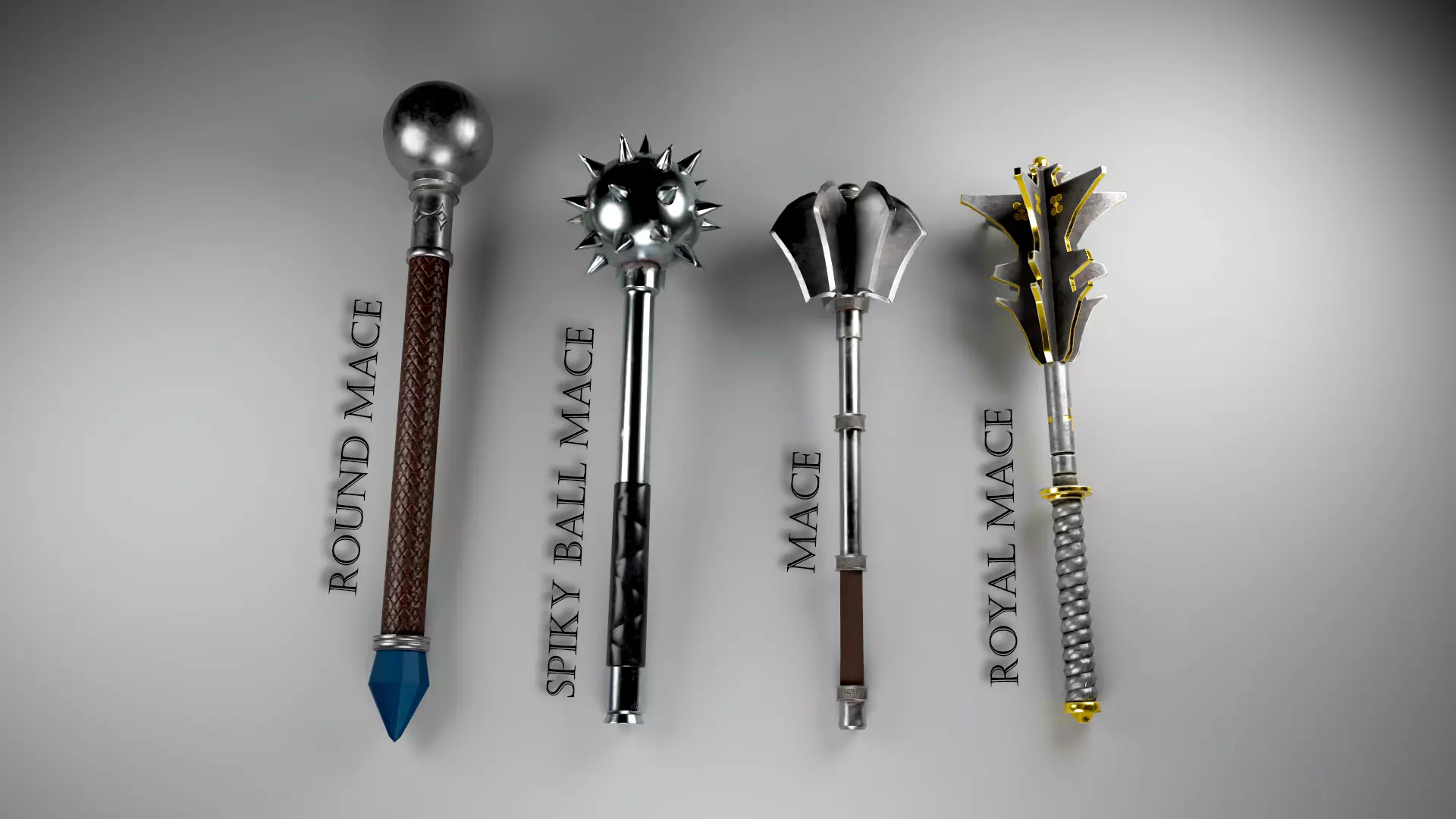 A pack of 4 unique medieval maces that are low poly, UV mapped, textured, and game ready.