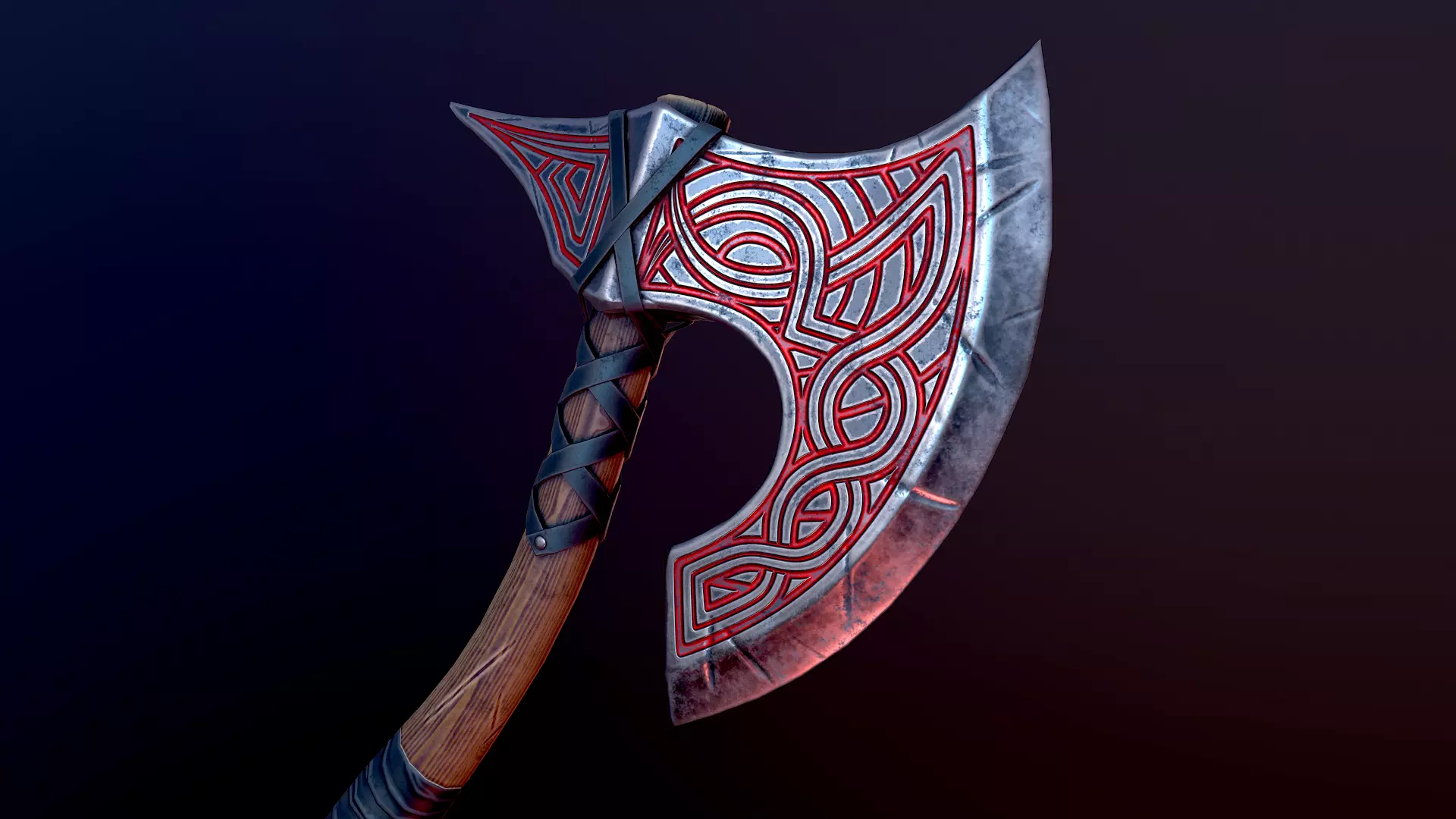Viking battle axe Model.The model was modeled on Blender 2.81, textured on Substance Painter and rendered with Marmoset Toolbag 3.This model can be used in games, films, advertising, design visualization, etc.This model contains 1 object.