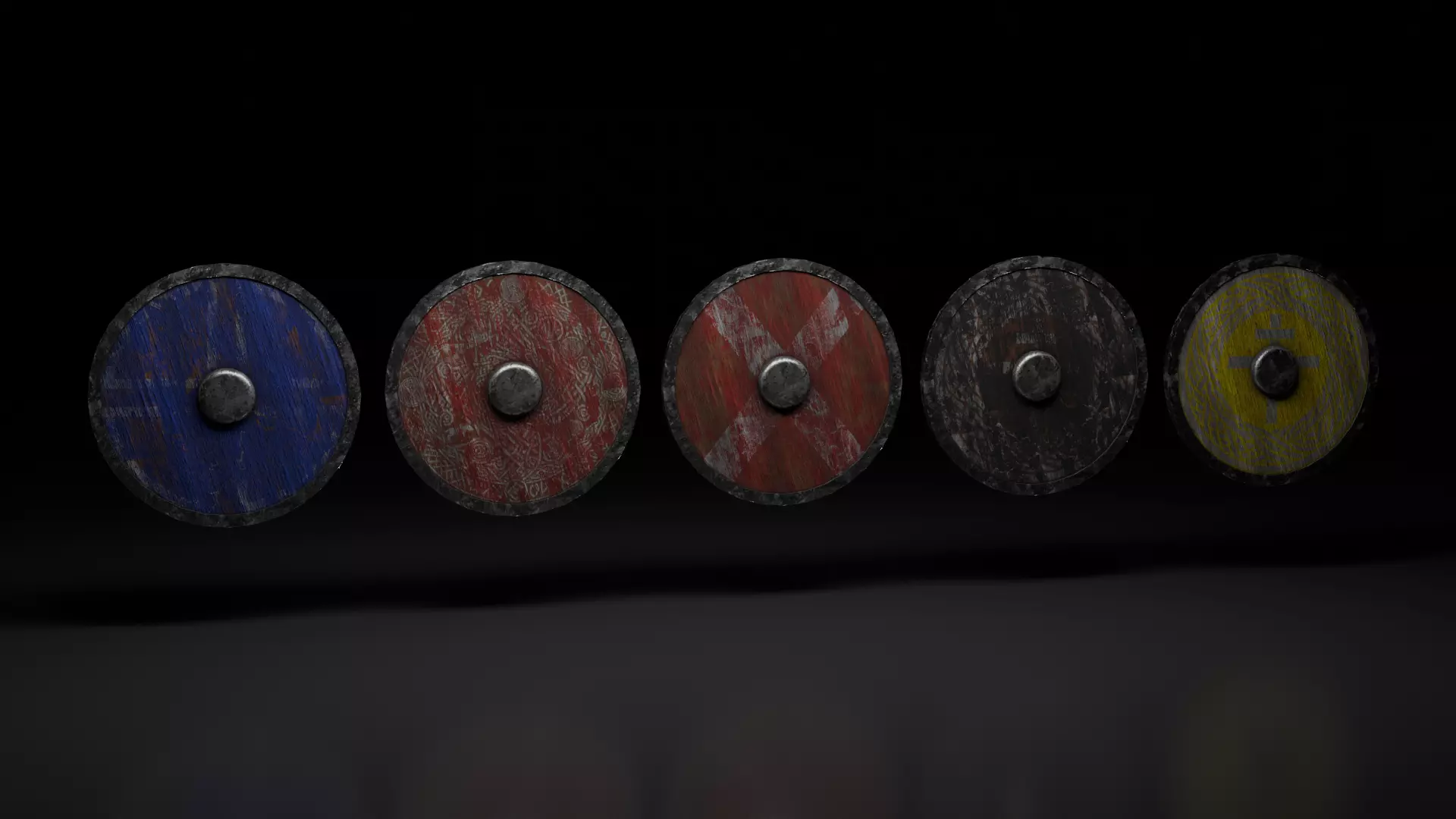 These shields are perfect for creating immersive Viking, medieval, or fantasy environments in games, 3D scenes, or animations.