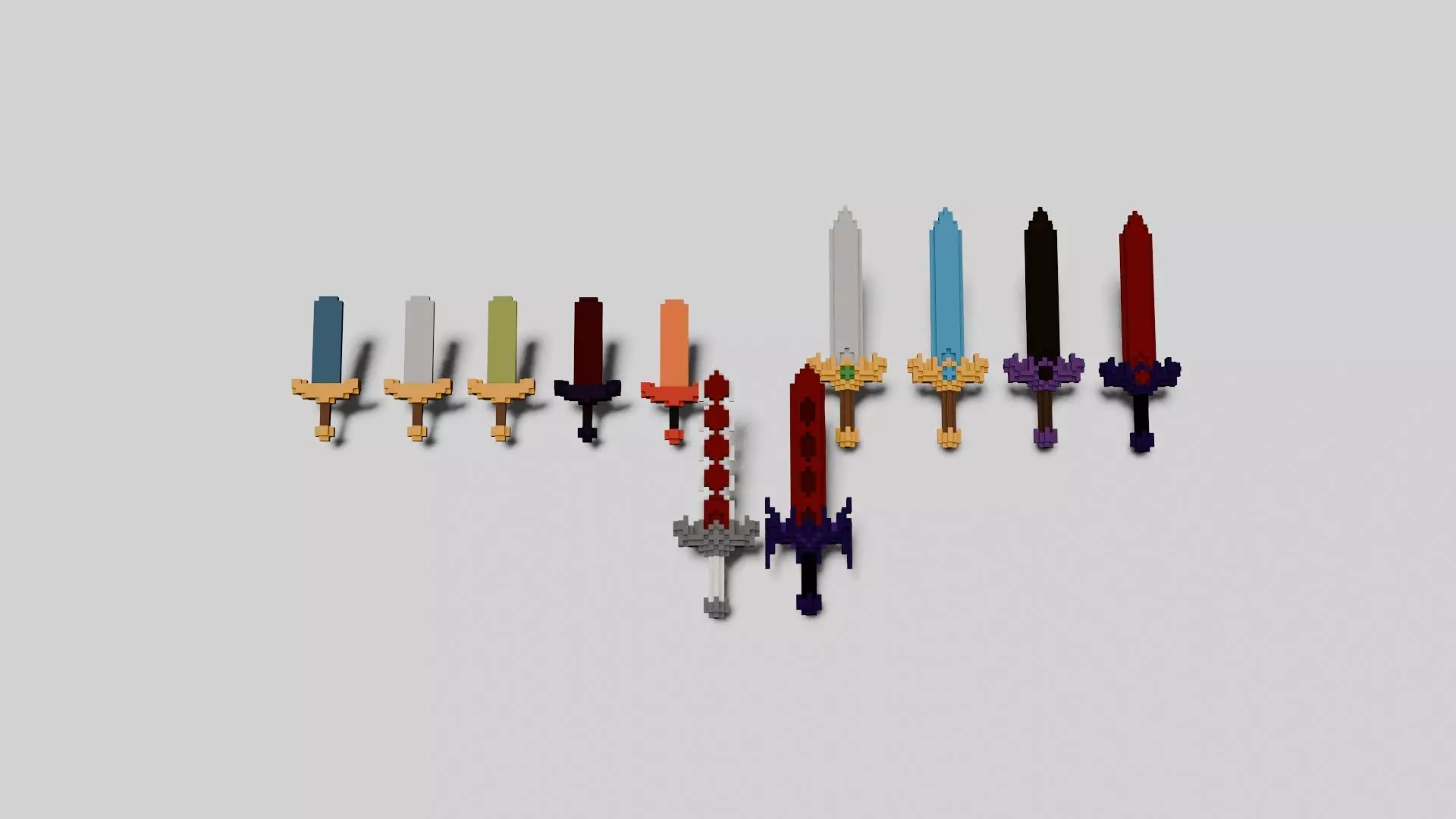 Pack of 10+ voxel swords with four variants.