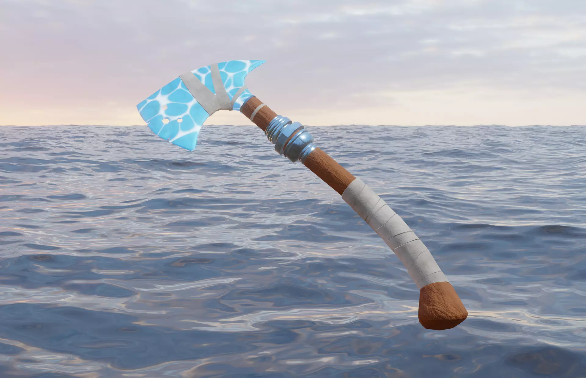 Low poly 3d model of fantasy water axe - Elemental axe, made in blender 2.93 with PBR textures in 2k and 4k