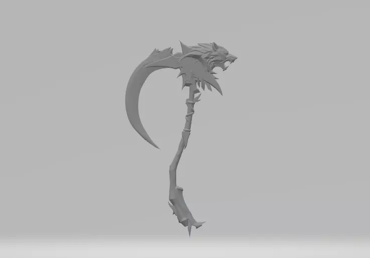 A scythe with with a distinctive wolf head.